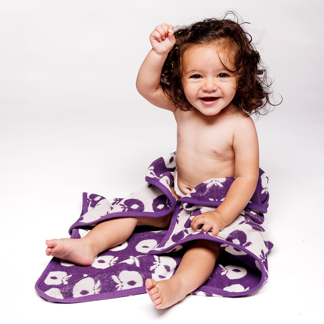 Das Handtuch von Småfolk werden in Dänemark mit dem Ziel entworfen, unzähligen Abenteuern und Spielen standzuhalten und auch nach wiederholtem Gebrauch ihre Form und Farbe zu behalten.