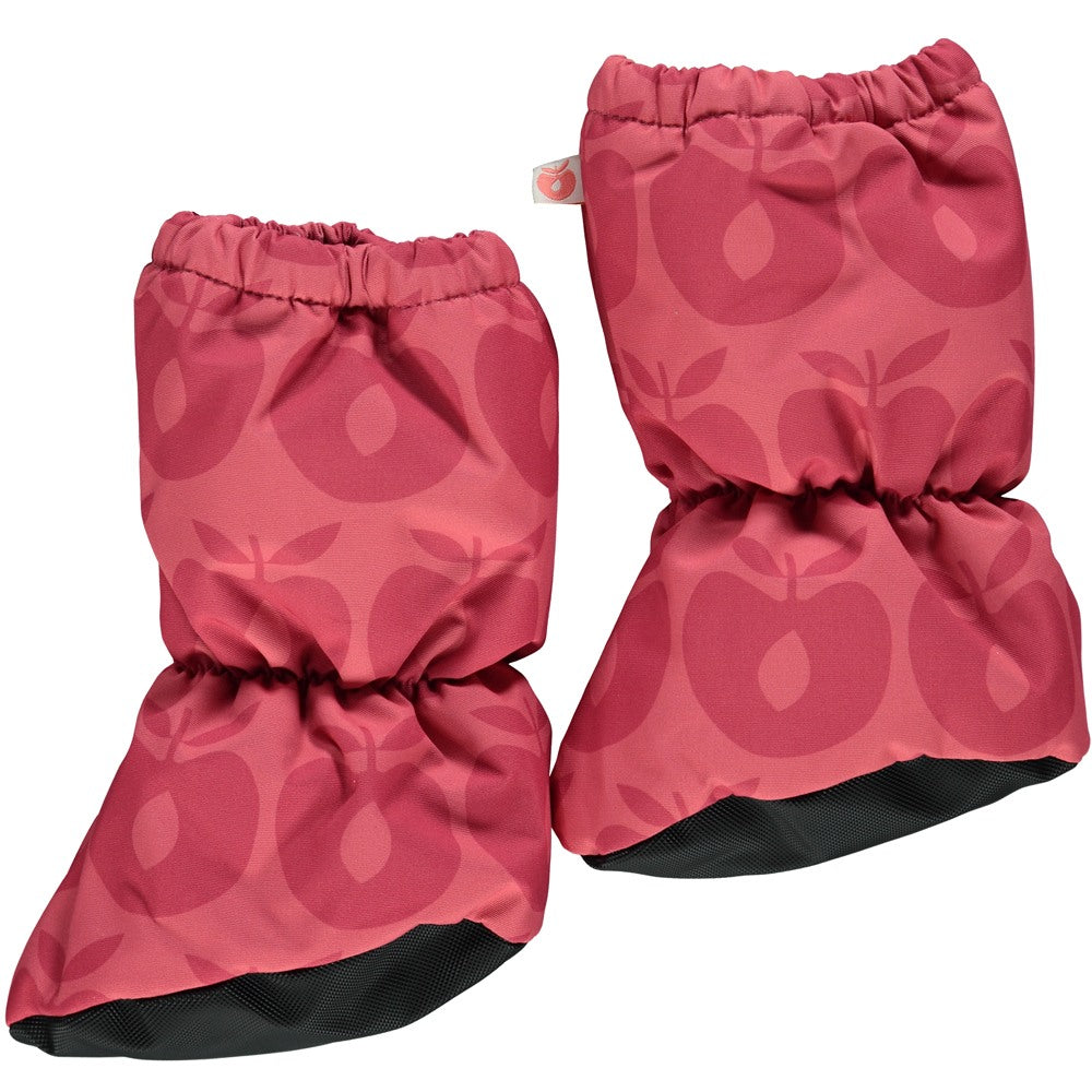 Babyschuhe mit langem Schaft und Äpfeln. Die Babyschuhe von Småfolk sind fantastisch für diejenigen, die noch nicht laufen können, aber im Sandkasten sitzen oder mit der Familie eine Schlittenfahrt unternehmen möchten.