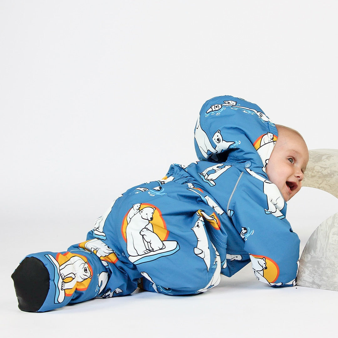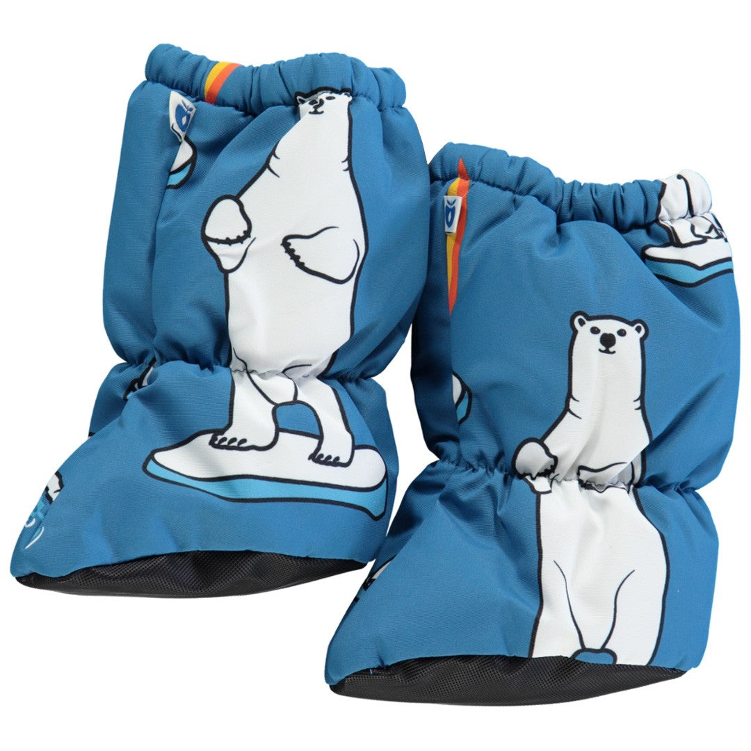 Babyschuhe mit langem Schaft und süßen Eisbären. Die Babyschuhe von Småfolk sind fantastisch für diejenigen, die noch nicht laufen können, aber im Sandkasten sitzen oder mit der Familie eine Schlittenfahrt unternehmen möchten.