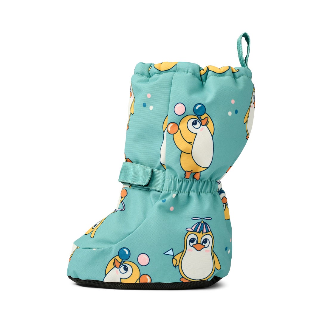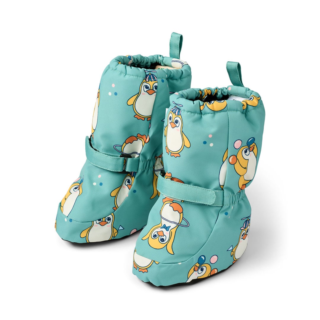 Babyschuhe mit langem Schaft und Pinguinen. Die Babyschuhe von Småfolk sind fantastisch für diejenigen, die noch nicht laufen können, aber im Sandkasten sitzen oder mit der Familie eine Schlittenfahrt unternehmen möchten.