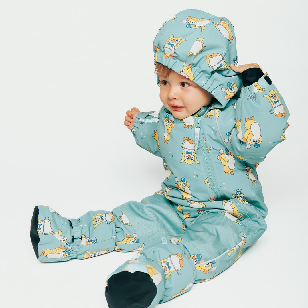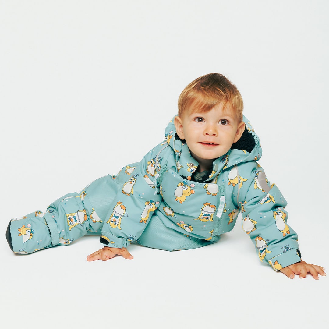 Verspielte Zirkuspinguine verleihen der Oberbekleidung Ihres Kleinen diesen Winter einen Hauch von Verspieltheit und Charme.