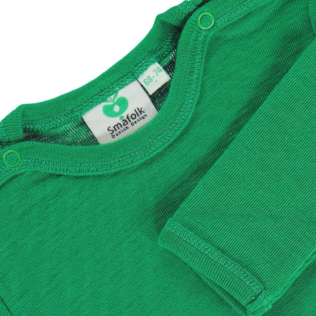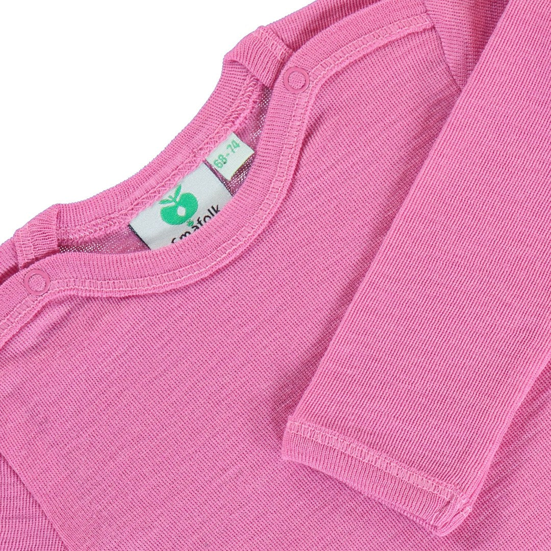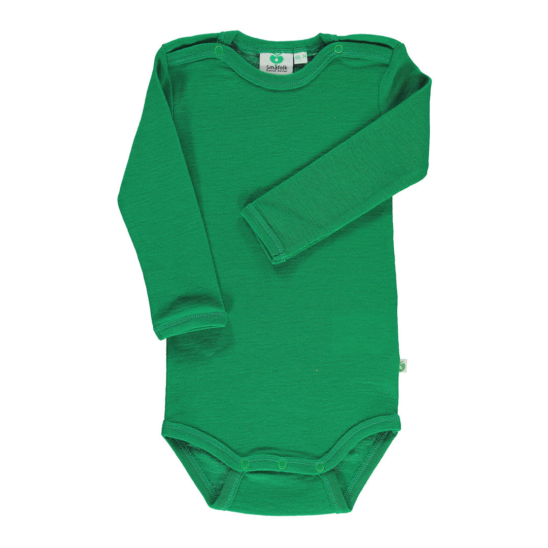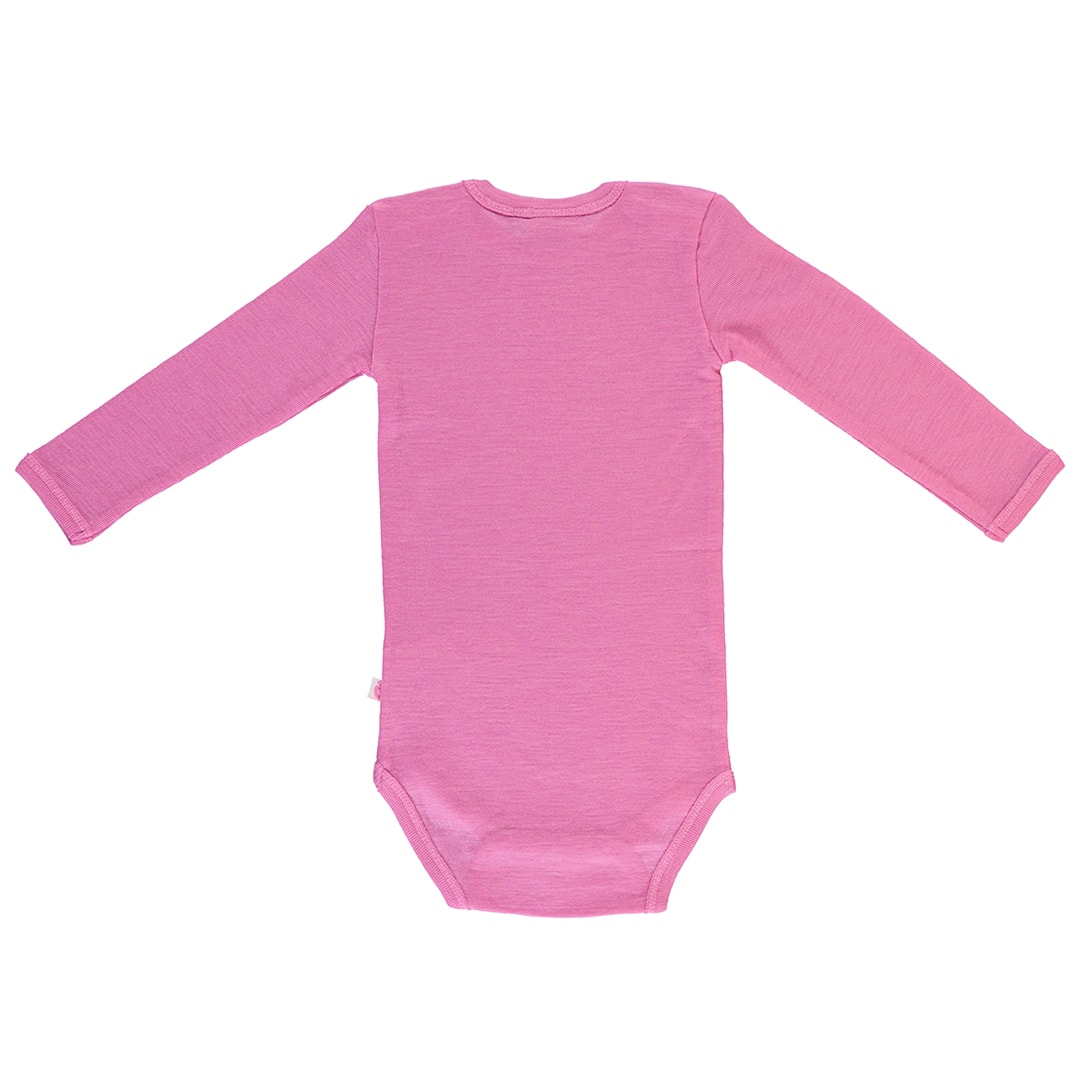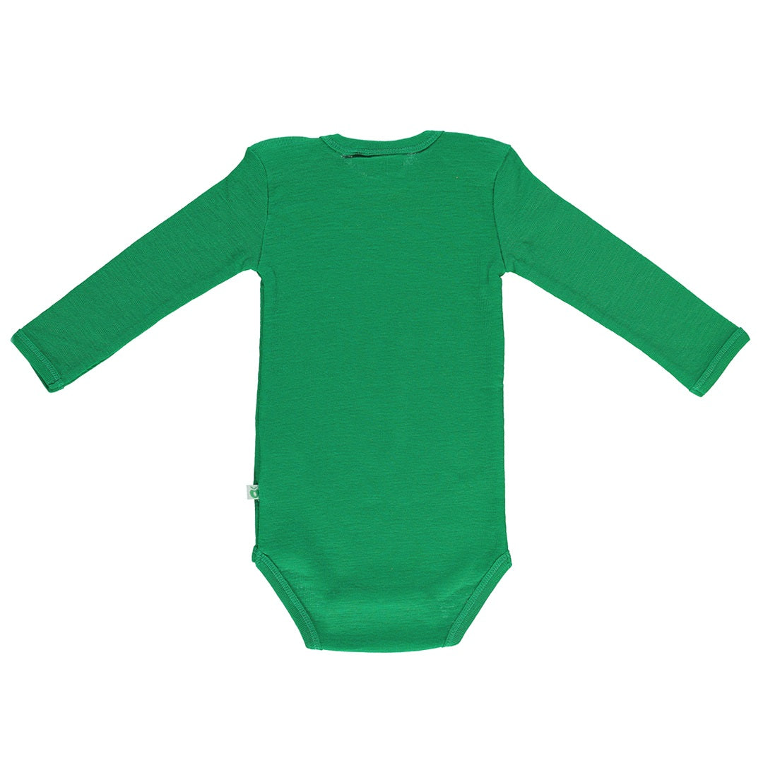 Body für Babys aus 100 % Merinowolle. Der Body hat eine normale Passform mit Druckknöpfen sowie Rippbündchen an Hals, Ärmeln und Beinen.