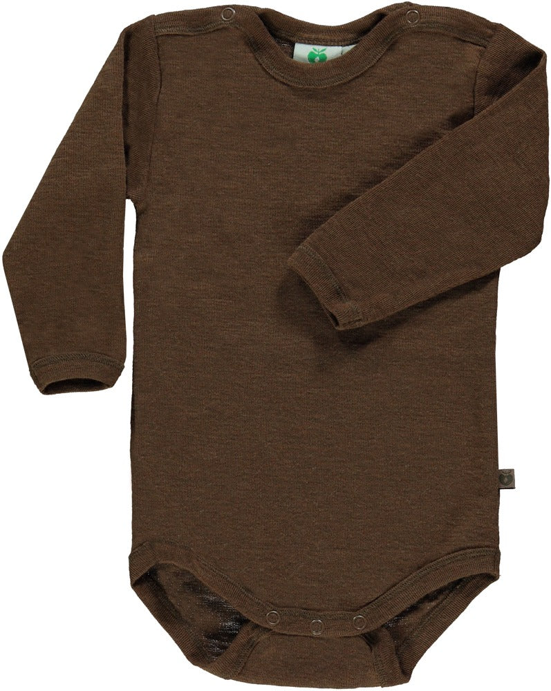 Langärmliger Baby Body aus 100 % Merinowolle.
