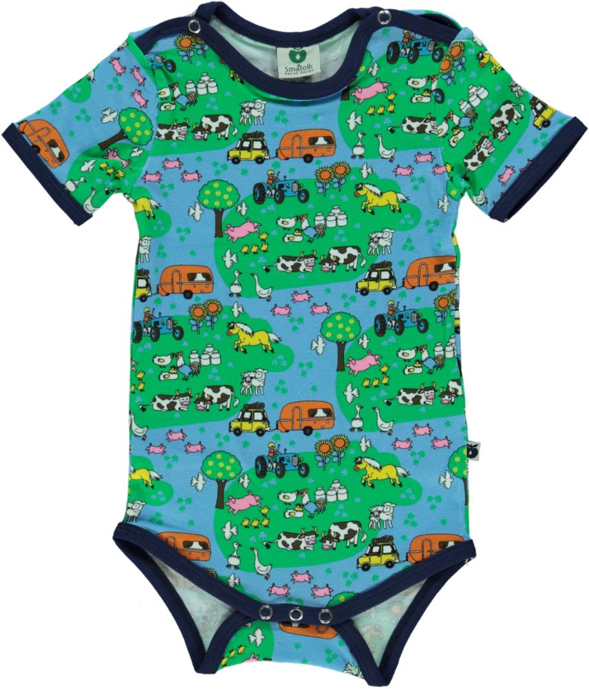 Shortsleeved body suit with landscape print.Småfolk is a danish brand, who are focusing onquality.so the family's little ones can play, grow andexplore their imagination in a colorful and vibrant world.thye body is made of 95% organic cotton and 5% Elastane.