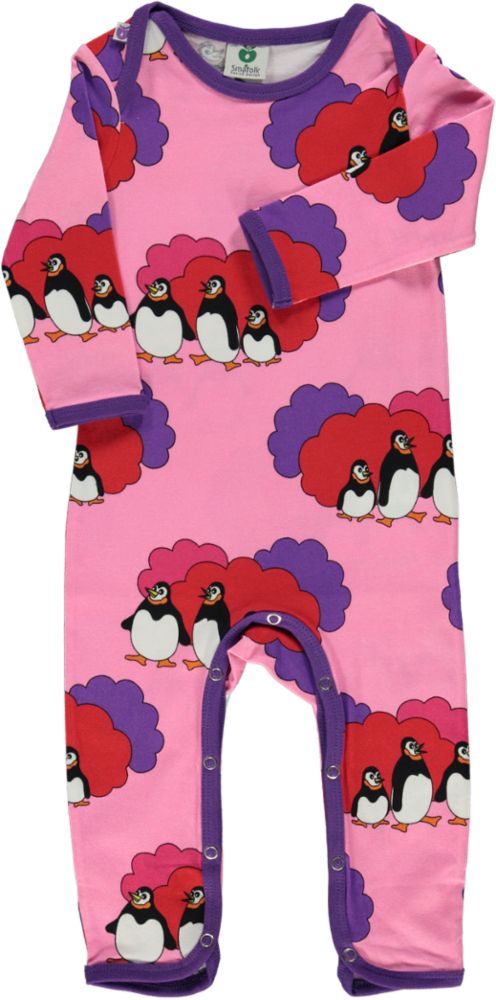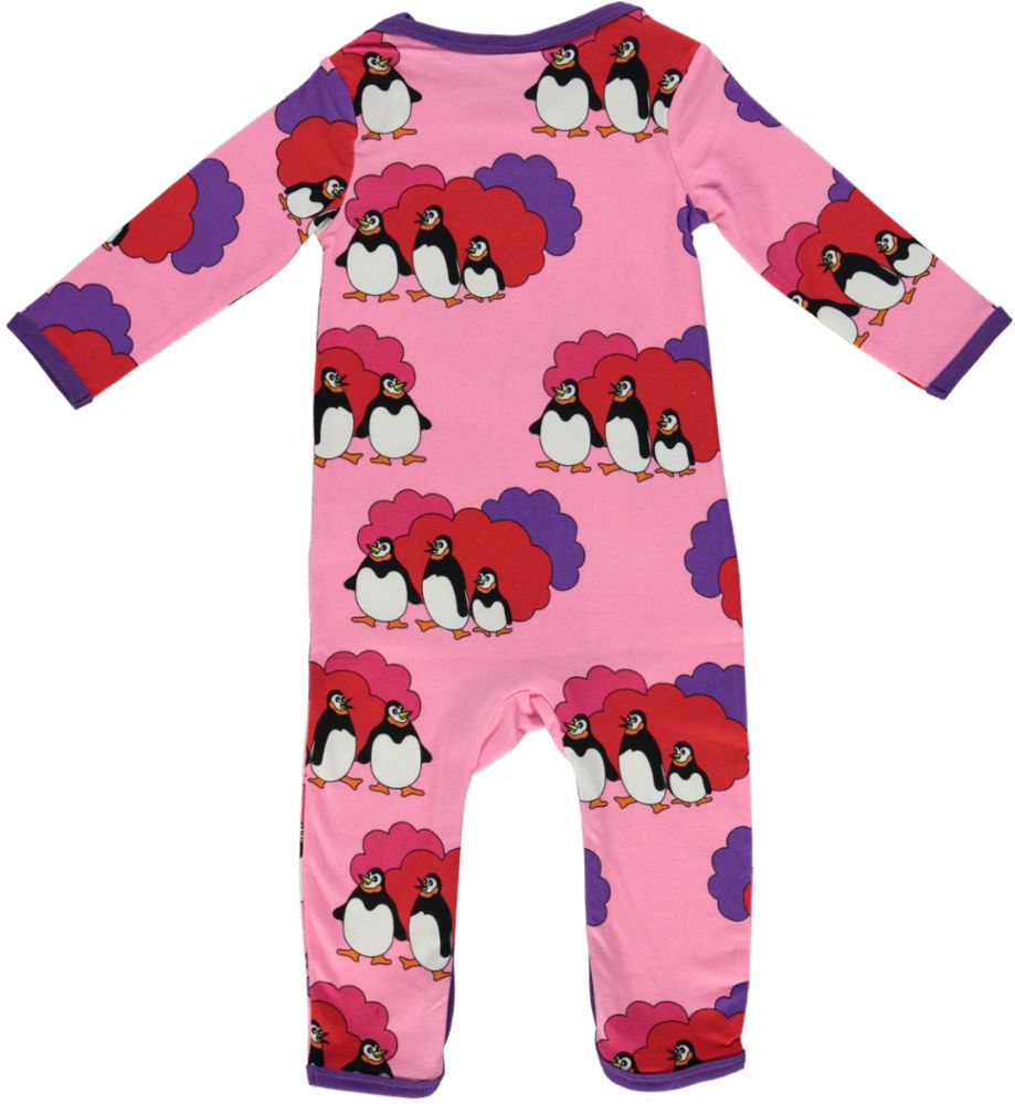 Einteiliger Anzug mit Pinguin-Print in Småfolks ganz eigenem Retro-Stil.Der Anzug hat Umschlagverschlüsse an den Schultern zum einfachen Wechseln.