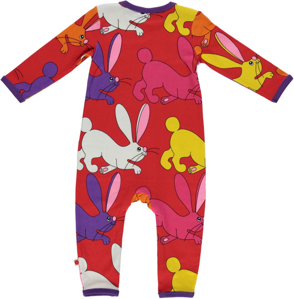 Einteiler mit Hasenaufdruck in Småfolks ganz eigenem Retro-Stil.Der Anzug hat Druckknöpfe an den Schultern zum einfachen Wechseln.