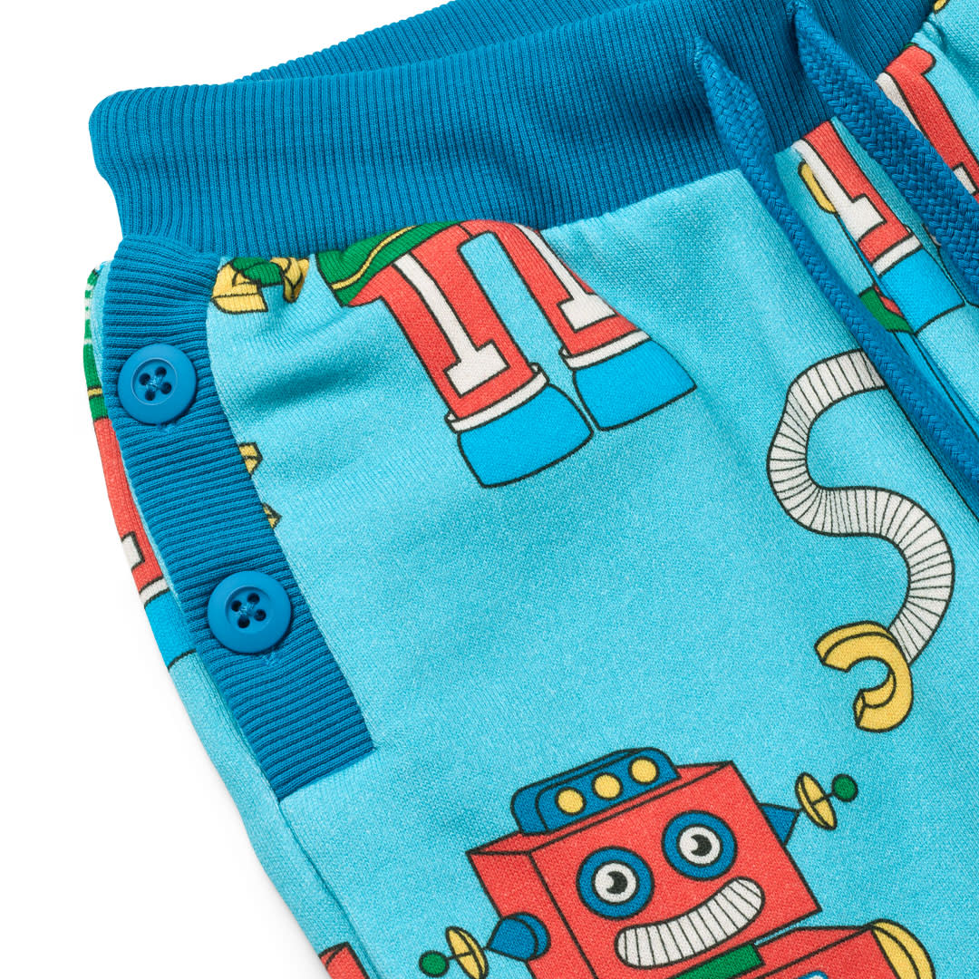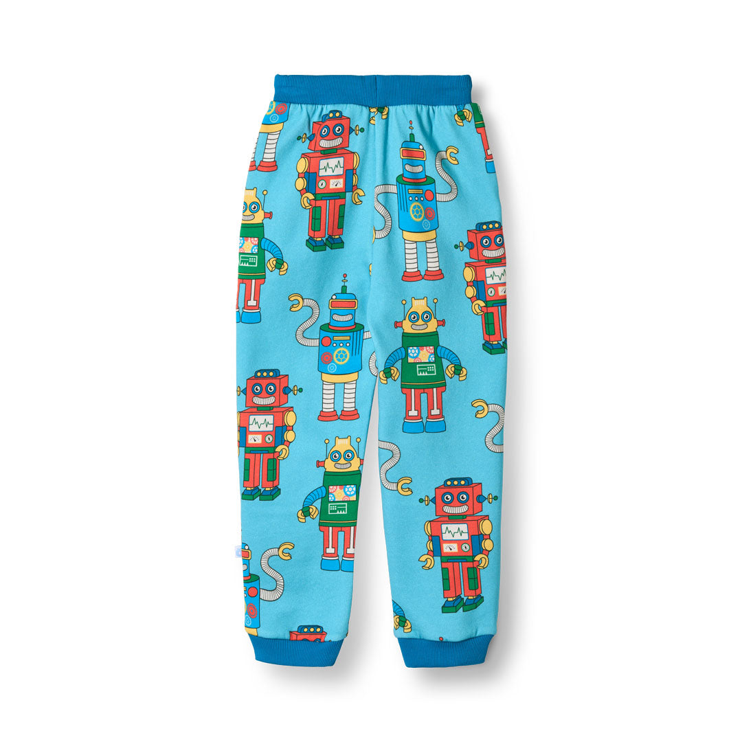Entspannte Hose mit Robotern, hergestellt aus einem weichen und warmen gebürsteten Sweatstoff aus 100 % Bio-Baumwolle. Diese Hose ist nach OEKO-TEX Standard 100® zertifiziert, was bedeutet, dass die Hose hergestellt und auf Schadstoffe getestet wurde, sodass Sie die Haut und Gesundheit Ihres Kindes schützen können.