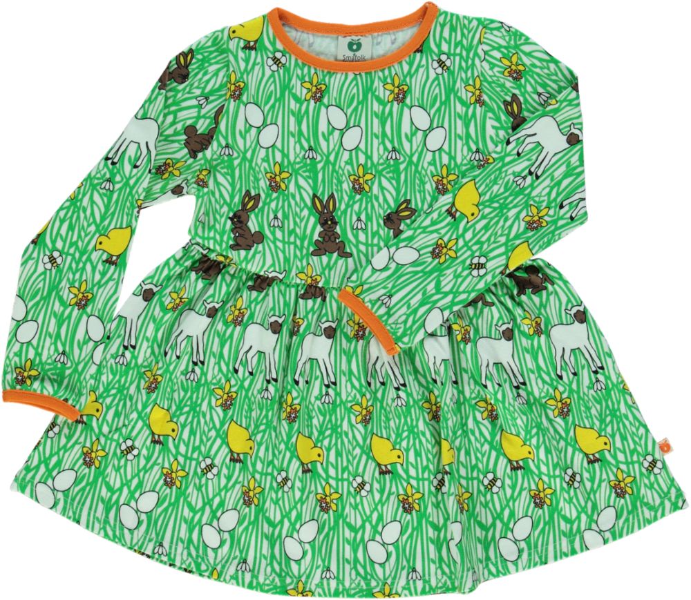 Dress with easter print.The dress has a nice skirt at the waist,which gives the ability of good movement and a sweet look.Dresses in beautiful bright colors that your child can play, grow and explore their fantasies in, this while the child can move freely. Småfolk´s dresses are ideal for both kindergarten, school and fine events