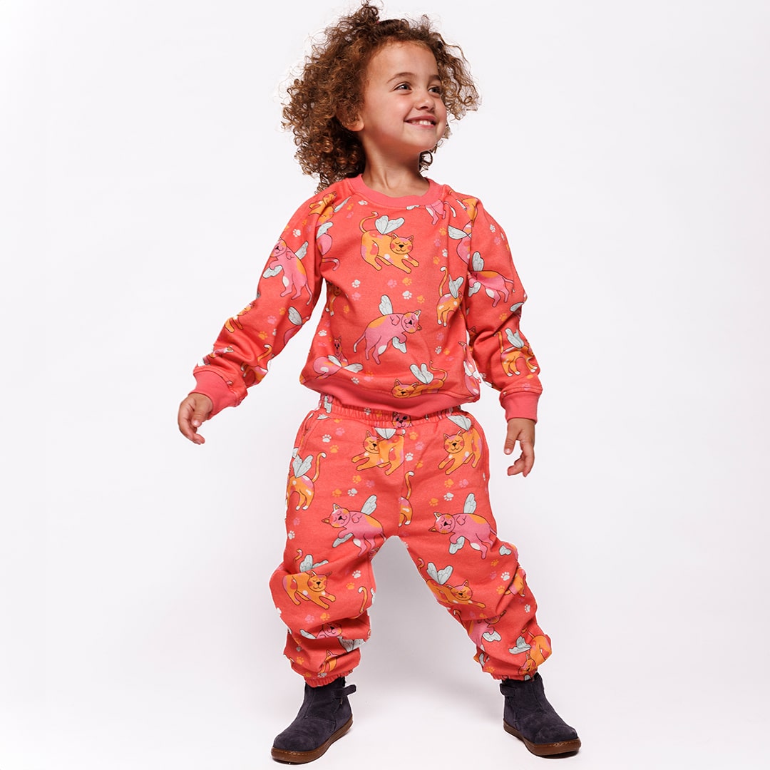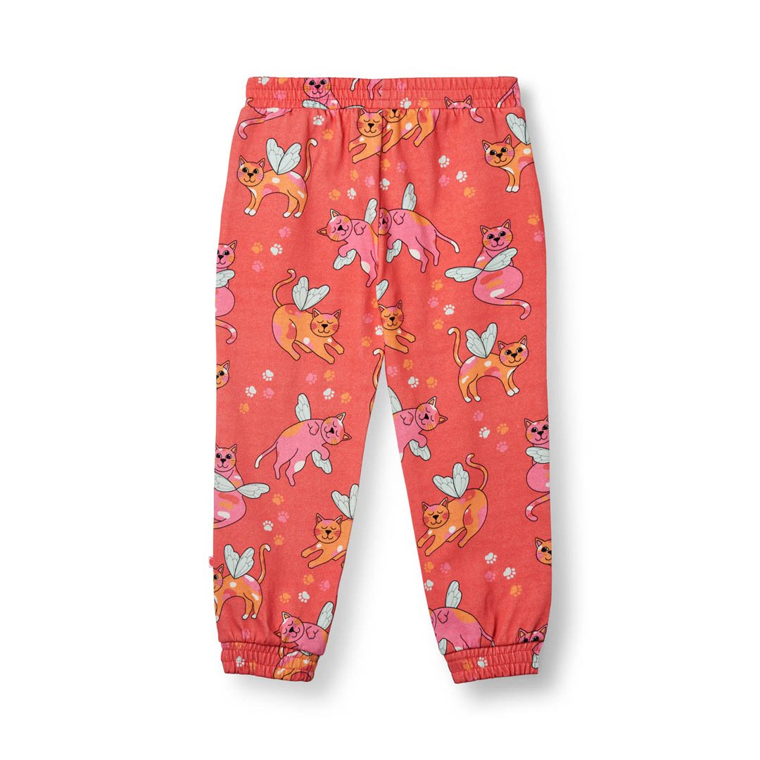 Hose aus ungebürstetem Sweatstoff mit Katzenmotiv, hergestellt aus 100 % Bio-Baumwolle. Diese Hose ist nach OEKO-TEX Standard 100® zertifiziert, was bedeutet, dass die Hose auf Schadstoffe hergestellt und getestet wurde, sodass Sie sich um die Haut und Gesundheit Ihres Kindes kümmern können.