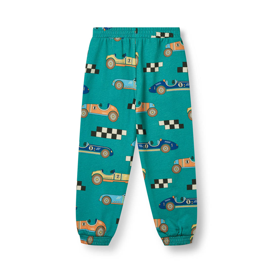 Hose aus ungebürstetem Sweatstoff mit Rennautos, hergestellt aus 100 % Bio-Baumwolle. Diese Hose ist nach OEKO-TEX Standard 100® zertifiziert, was bedeutet, dass die Hose auf Schadstoffe hergestellt und getestet wurde, sodass Sie sich um die Haut und Gesundheit Ihres Kindes kümmern können.