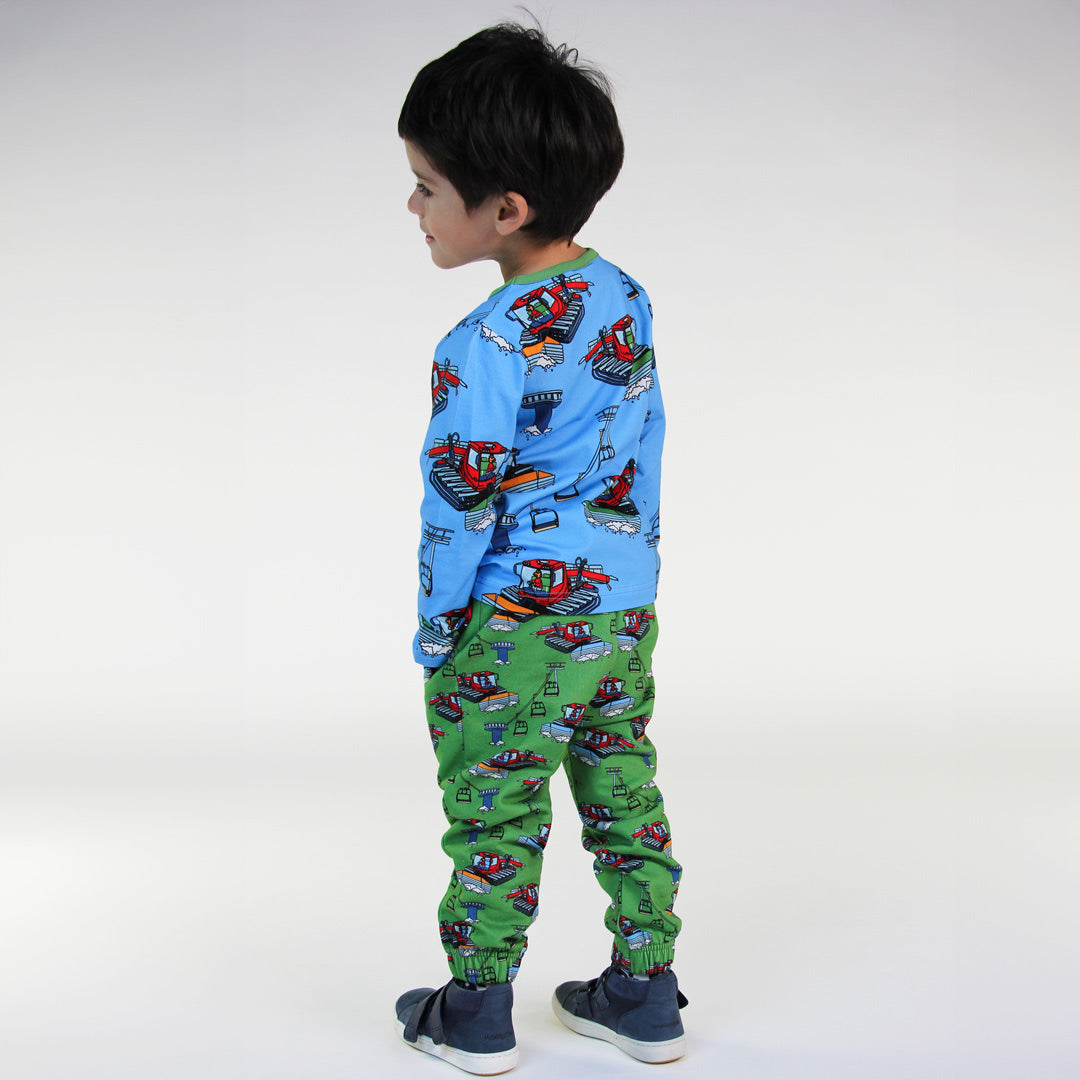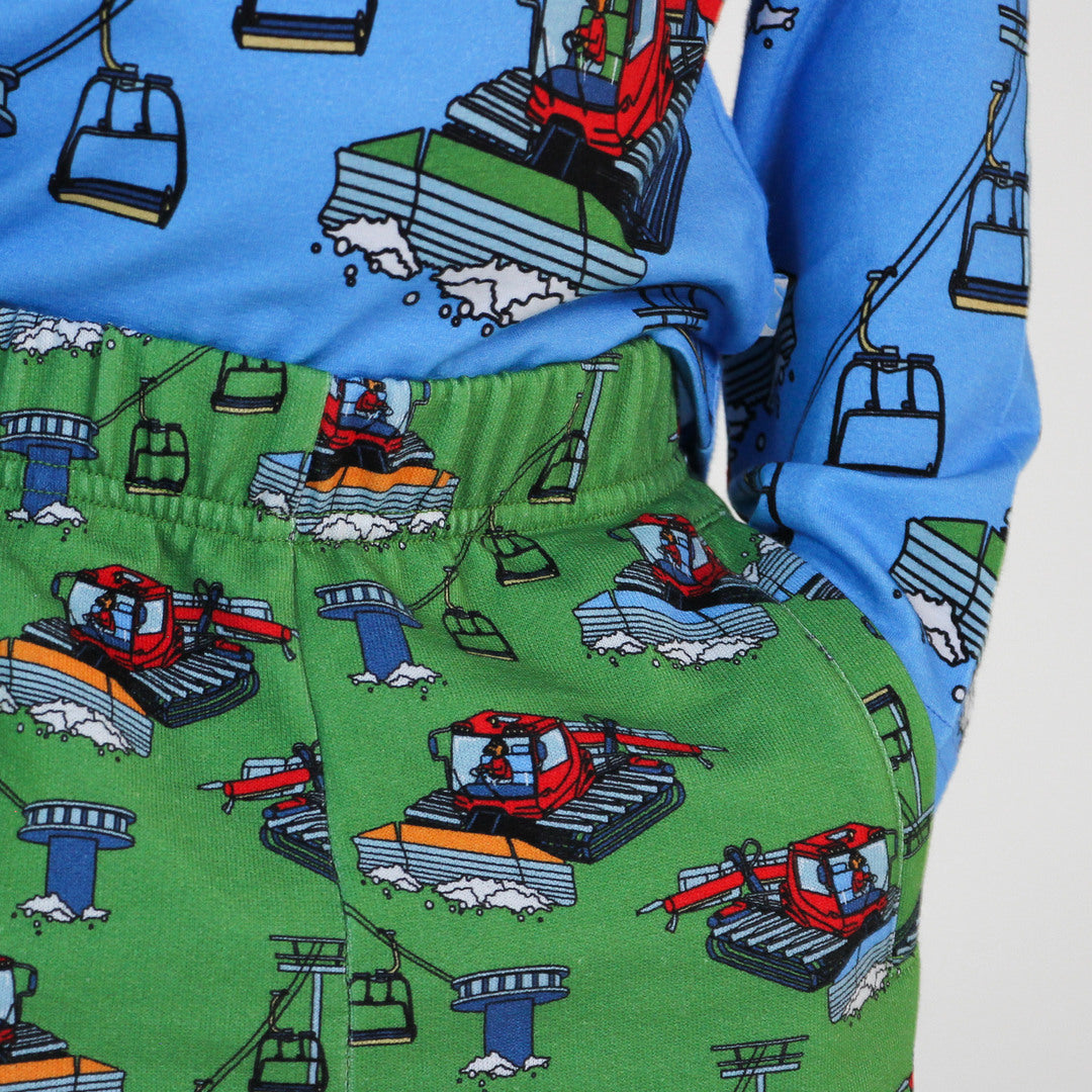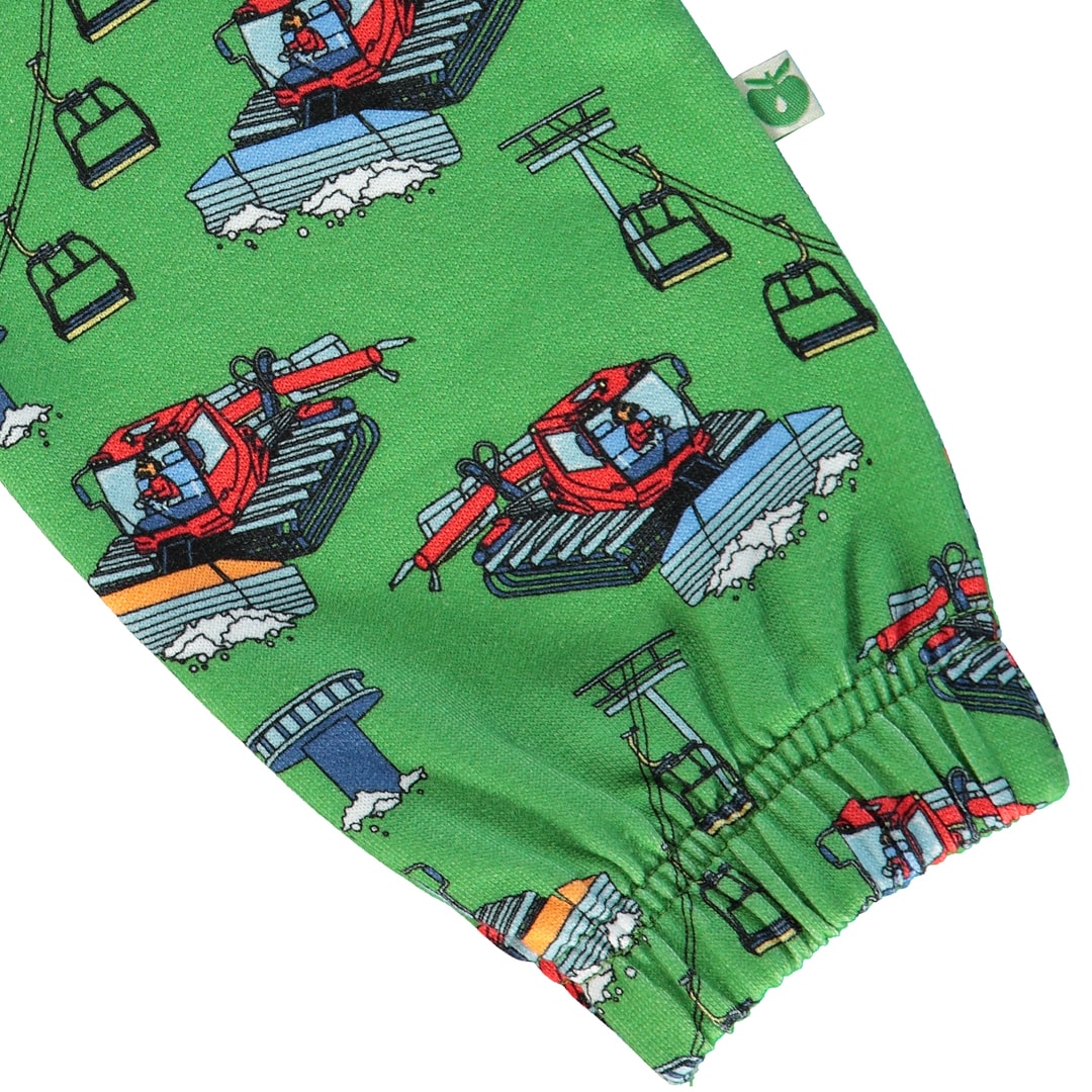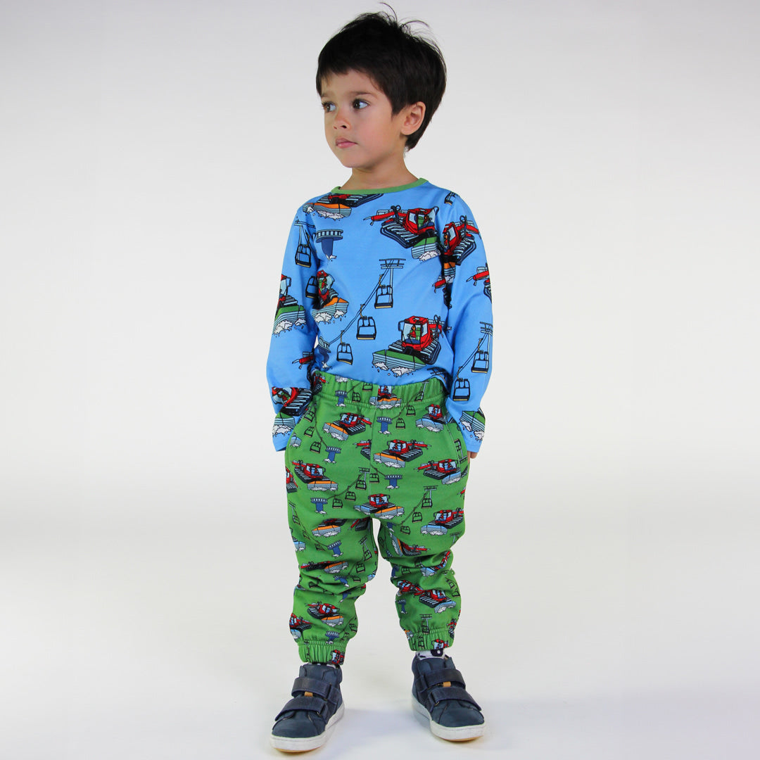 Die Pistenraupen sind die wichtigsten Maschinen auf den verschneiten Hügeln. Das Wildschwein fährt mit der Pistenraupe den Hügel hinauf und hinunter, gleicht alle großen Schneehaufen aus und bereitet sich auf einen weiteren Tag im Schnee vor. Bei der Gestaltung der Drucke von Småfolk liegt der Schwerpunkt auf fröhlichen Farben, Details und Geschichten. Unsere Hosen sind eine großartige Möglichkeit, der Garderobe Ihres Kindes Persönlichkeit zu verleihen und gleichzeitig dafür zu sorgen, dass sich Ihr Kind den ganzen Tag wohl fühlt.