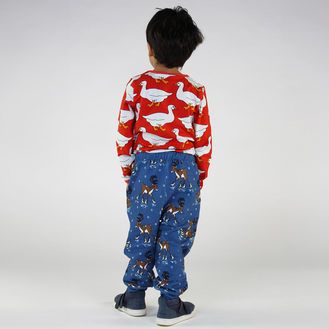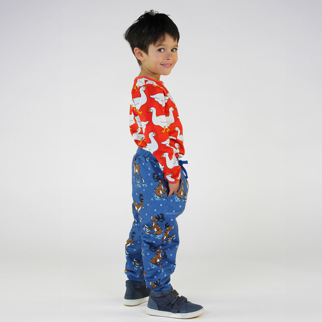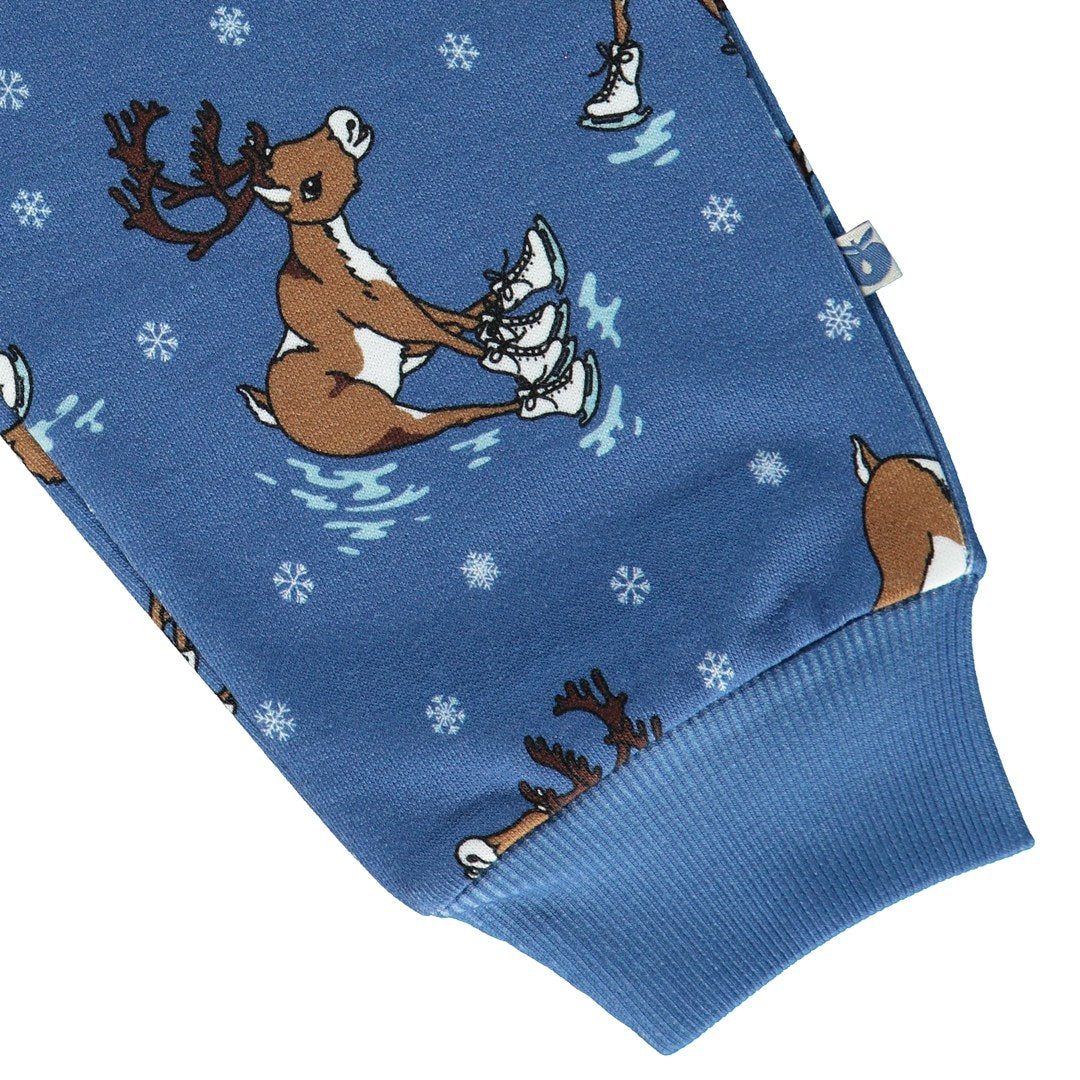 Hose aus gebürstetem Sweat material mit Rentier, hergestellt aus 100 % Bio-Baumwolle. Diese Hose ist nach OEKO-TEX Standard 100® zertifiziert, was bedeutet, dass die Hose auf Schadstoffe hergestellt und getestet wurde, sodass Sie sich um die Haut und Gesundheit Ihres Kindes kümmern können.