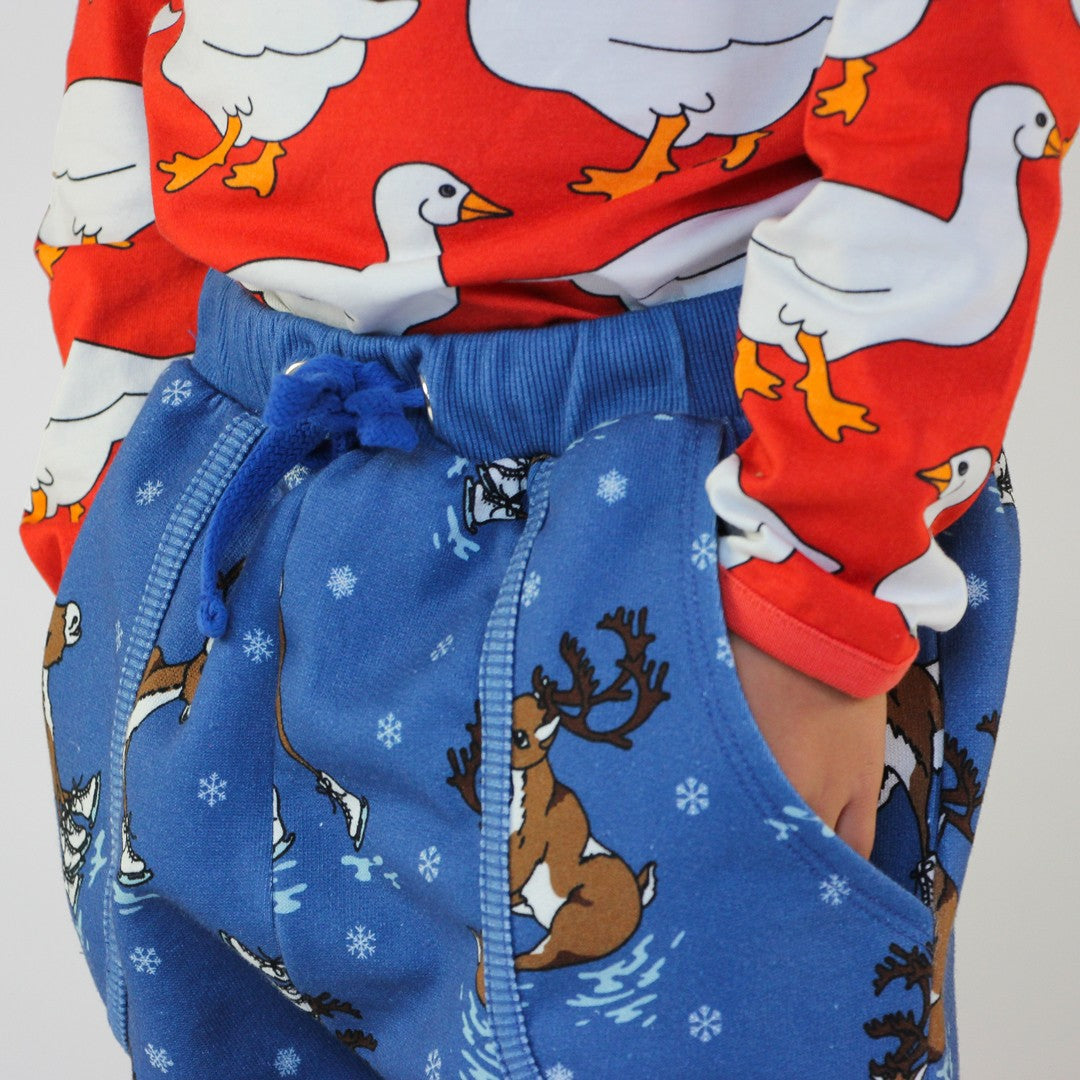 Die beiden Rentiere versuchen ihr Bestes, um auf dem See Schlittschuh zu laufen, aber das ist nicht einfach, wenn man vier Beine hat. Der niedliche Rentierdruck ist perfekt für die Winterzeit und kann als Set oder in Kombination mit anderen Drucken verwendet werden. Bei der Gestaltung der Drucke von Småfolk liegt der Schwerpunkt auf fröhlichen Farben, Details und Geschichten. Unsere Hosen sind eine großartige Möglichkeit, der Garderobe Ihres Kindes Persönlichkeit zu verleihen und gleichzeitig dafür zu sorgen, dass sich Ihr Kind den ganzen Tag wohl fühlt.