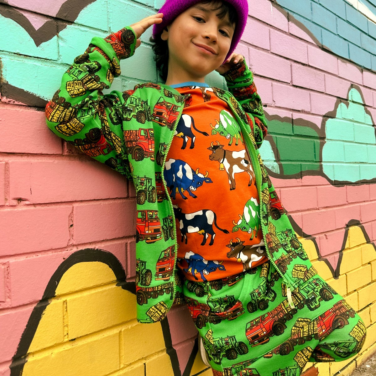 Jogginghose mit Traktoren im ganz eigenen, einzigartigen Retro-Stil von Småfolk. Die Hose ist mit Gummizug und Kordelzug in der Taille sowie gerippten Abschlüssen an den Knöcheln gestaltet. Die Jogginghosen von Småfolk werden in Dänemark entworfen und aus 100 % bester Bio-Baumwolle hergestellt. Unsere Hosen sind in wunderschönen leuchtenden Farben hergestellt, in denen Ihr Kind spielen, wachsen und seine Fantasie erkunden kann, während sich das Kind frei bewegen und warm halten kann. Jogginghosen für kleine Leute sind ideal für die kälteren Tage und Übergänge. Waschanleitung: Bei maximal 30 Grad waschen, nicht bleichen, nicht im Trockner trocknen, bei niedriger Temperatur bügeln, nicht in die chemische Reinigung schicken.