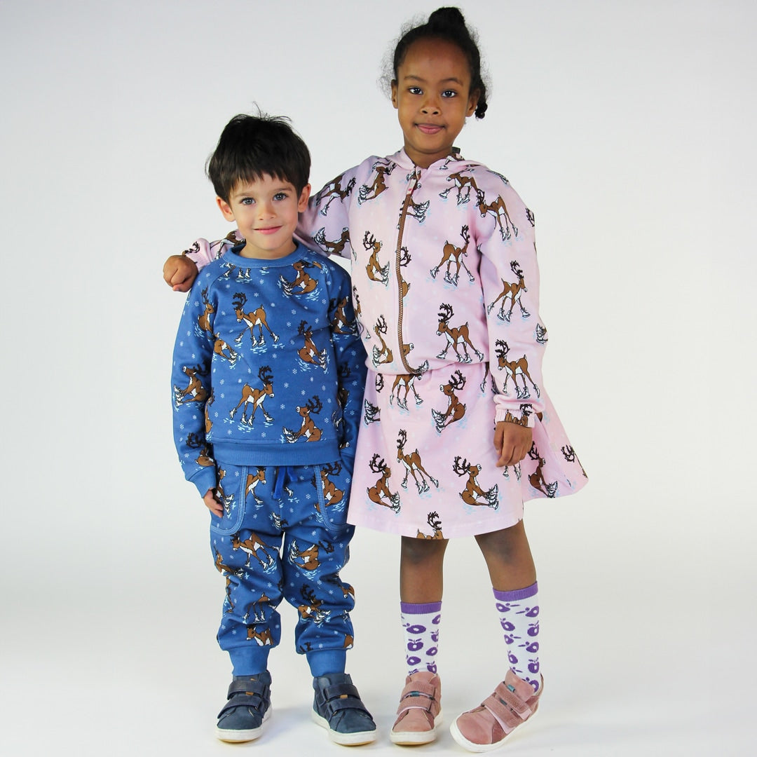 Die beiden Rentiere versuchen ihr Bestes, um auf dem See Schlittschuh zu laufen, aber das ist nicht einfach, wenn man vier Beine hat. Der niedliche Rentierdruck ist perfekt für die Winterzeit und kann als Set oder in Kombination mit anderen Drucken verwendet werden. Bei der Gestaltung der Drucke von Småfolk liegt der Schwerpunkt auf fröhlichen Farben, Details und Geschichten. Unsere Pullover sind eine großartige Möglichkeit, der Garderobe Ihres Kindes Persönlichkeit zu verleihen und gleichzeitig dafür zu sorgen, dass sich Ihr Kind den ganzen Tag wohlfühlt.