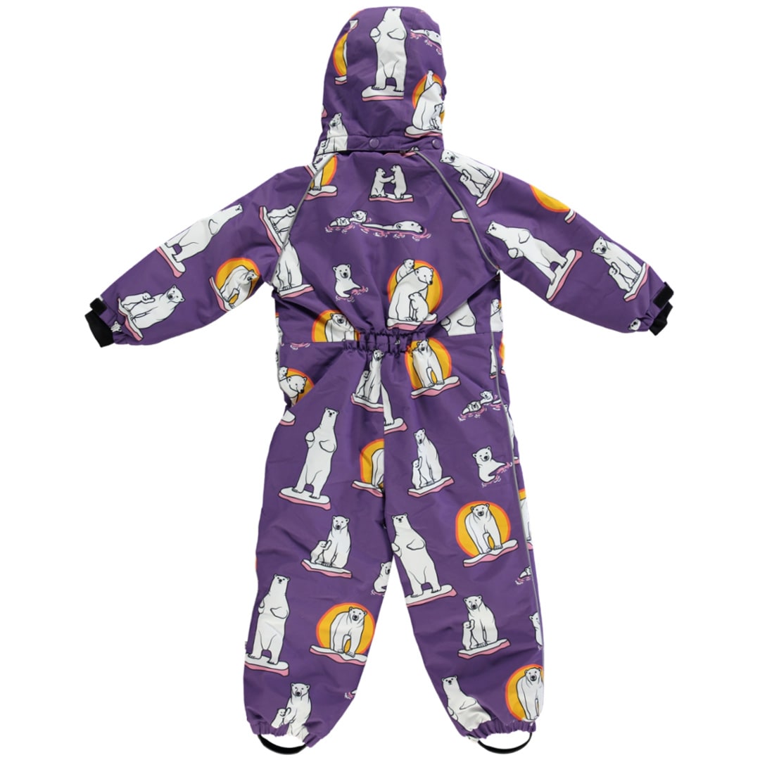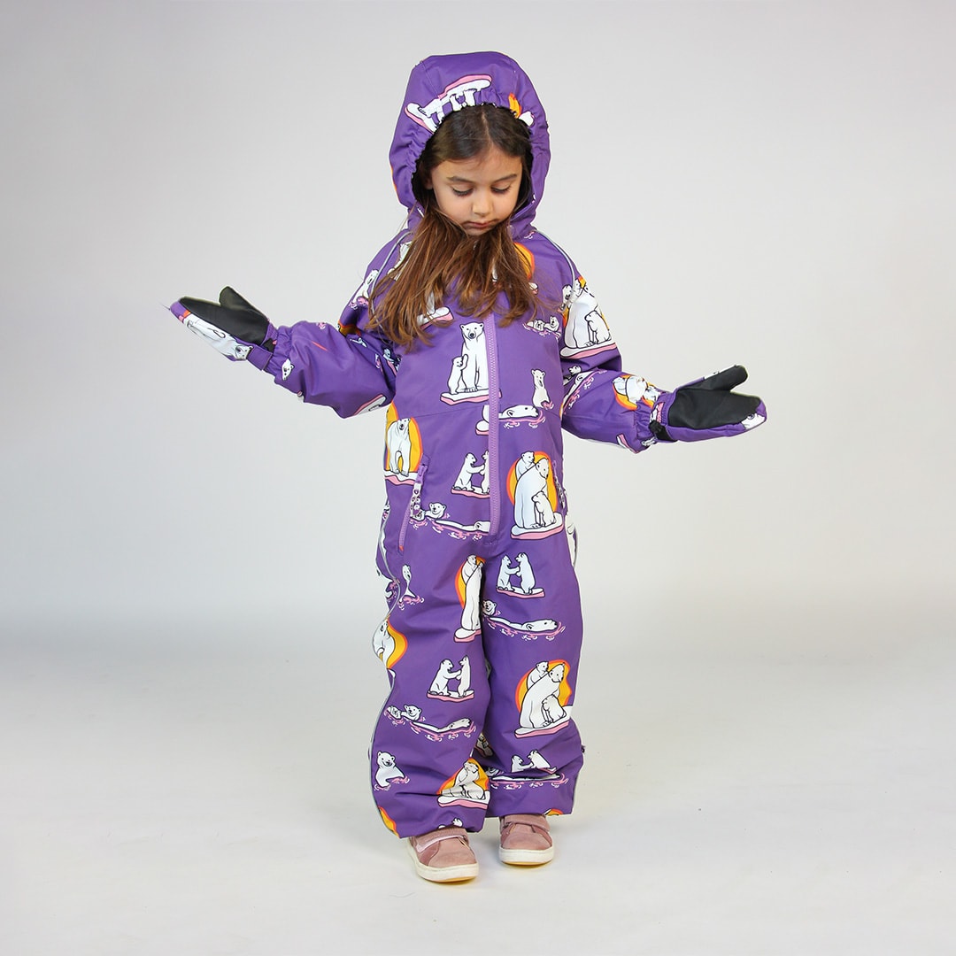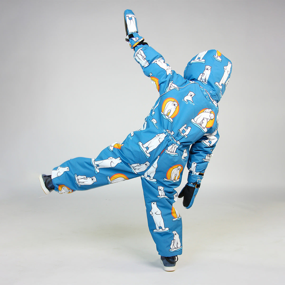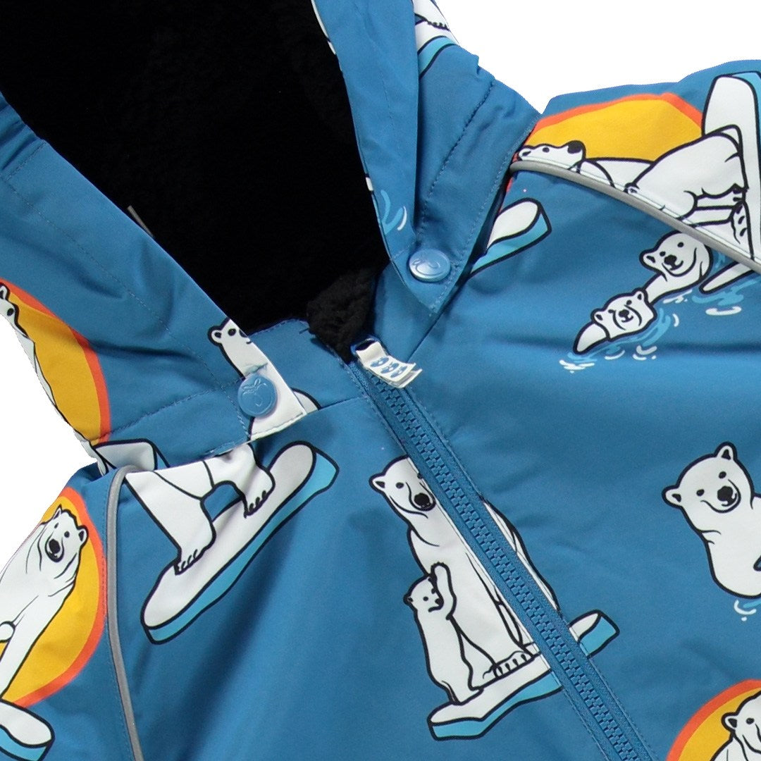 Der Anzug hat abnehmbare Gummibänder an den Füßen und reflektierende Paspeln an der Schulter und an den Hosenbeinen. Der Anzug verfügt über eine DuPont™ Sorona®-Isolierung, die das Kind warm und trocken hält. Der Anzug ist mit BIONIC-FINISH® ECO behandelt, einer biologisch abbaubaren Oberflächenbehandlung. Die Behandlung verhindert, dass Feuchtigkeit in den Stoff eindringt, während überschüssige Körperfeuchtigkeit automatisch an die Oberfläche des Materials transportiert wird, wo sie verdunstet. Die Behandlung ist frei von fluoridhaltigen Substanzen. Der Fluganzug ist schnee- und wasserabweisend, schmutzabweisend und winddicht.
