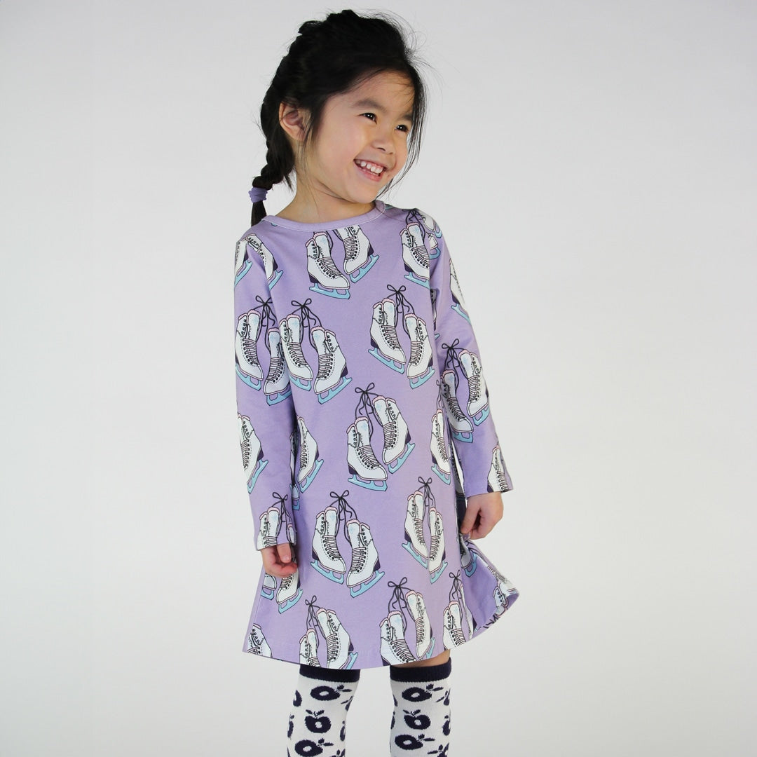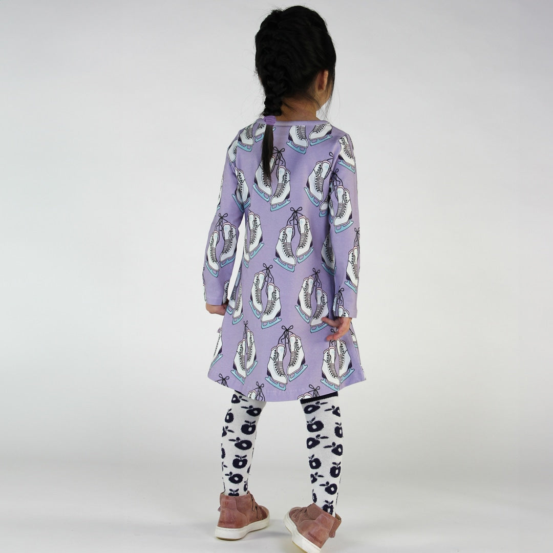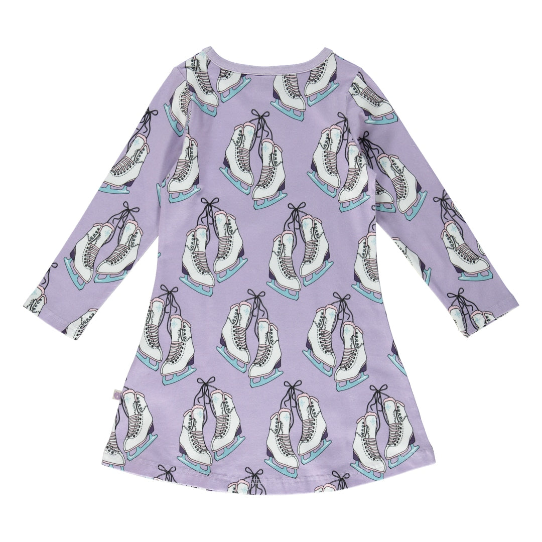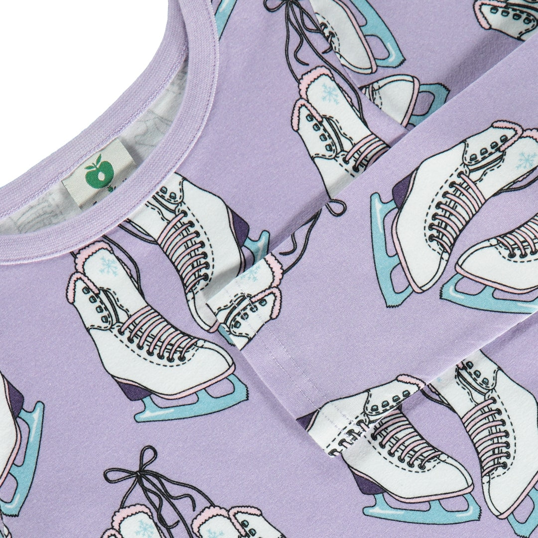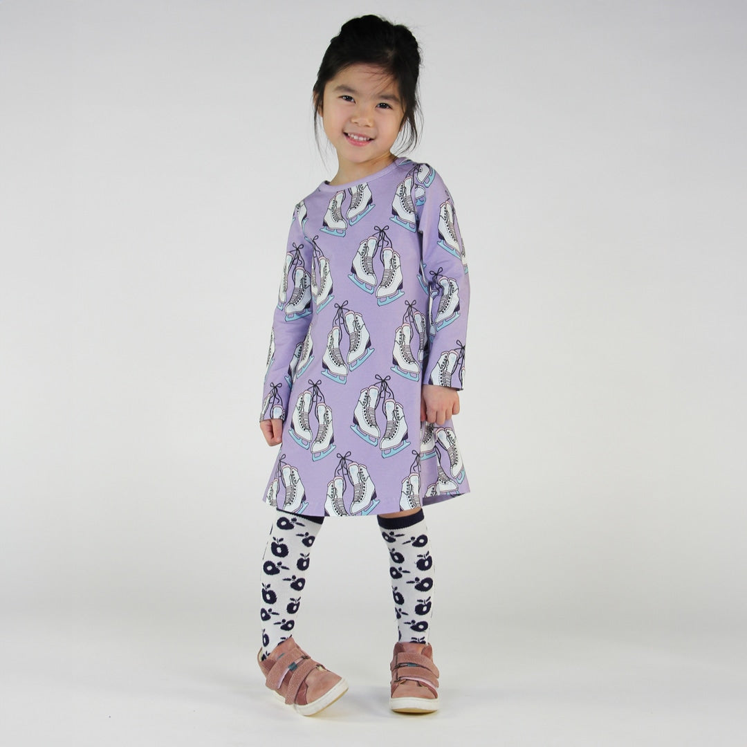 Langärmliges Kleid mit Schlittschuhe, hergestellt aus dehnbarem Bio-Baumwolljersey. Dieses Kleid ist nach OEKO-TEX Standard 100® zertifiziert, was bedeutet, dass das Kleid hergestellt und auf Schadstoffe getestet wurde, sodass Sie sich um die Haut und Gesundheit Ihres Kindes kümmern können.