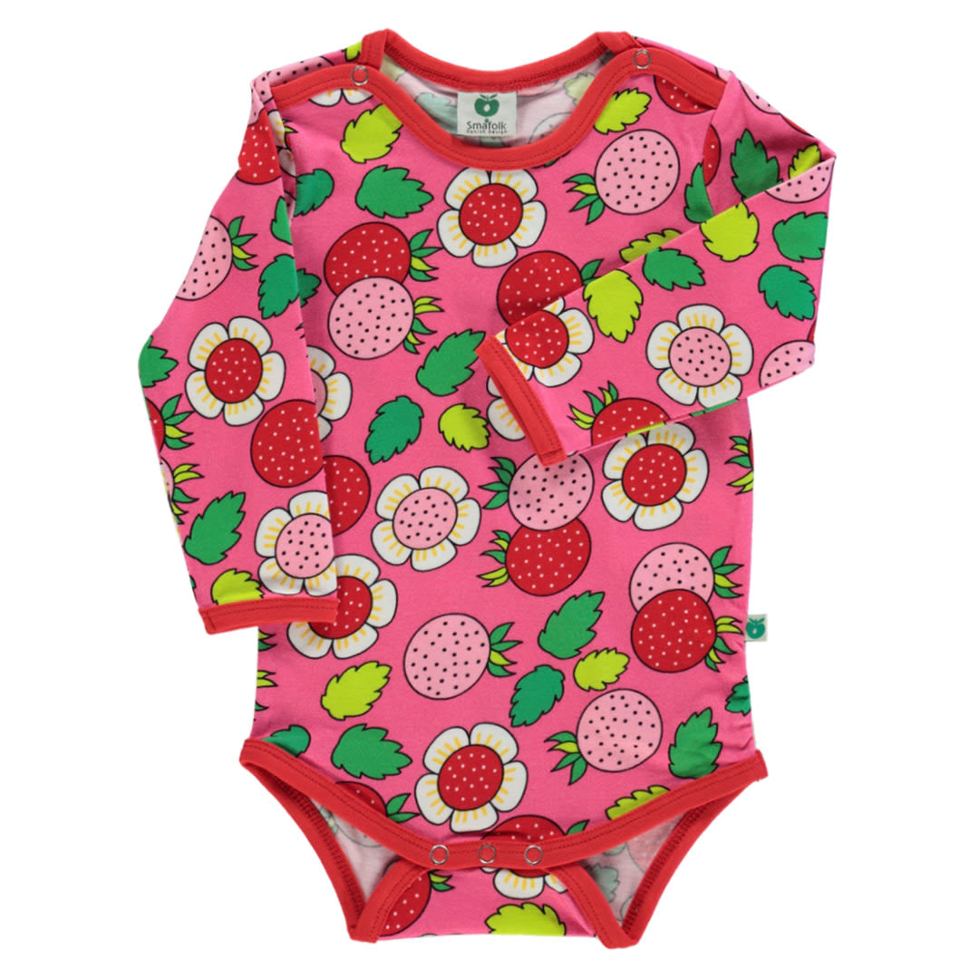 Langärmliger Baby Body mit Blumen und Erdbeeren