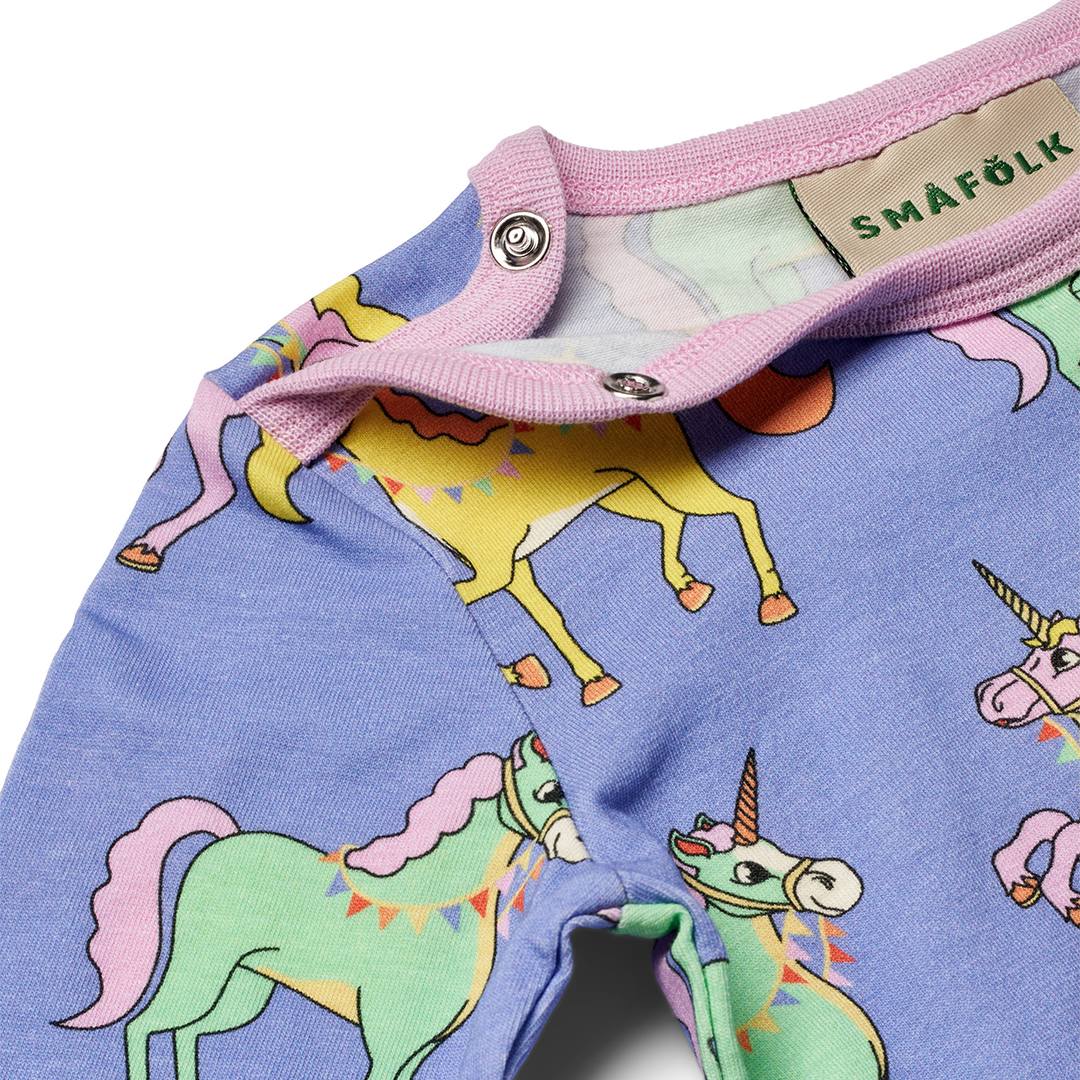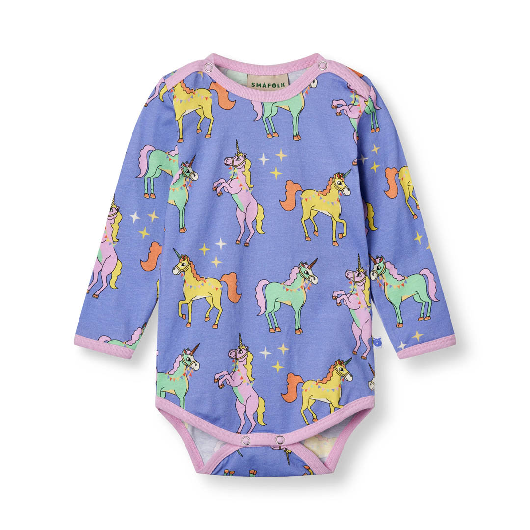 Lassen Sie Ihrer Fantasie freien Lauf mit unserem mystischen und festlichen Einhorn-Aufdruck, bestreut mit lustigen Farben und Feenstaub. Bei der Gestaltung der Drucke von Småfolk liegt der Schwerpunkt auf fröhlichen Farben, Details und Geschichten. Unsere Bodys sind eine großartige Möglichkeit, der Garderobe Ihres Kindes Persönlichkeit zu verleihen und gleichzeitig dafür zu sorgen, dass sich Ihr Kind den ganzen Tag wohlfühlt.