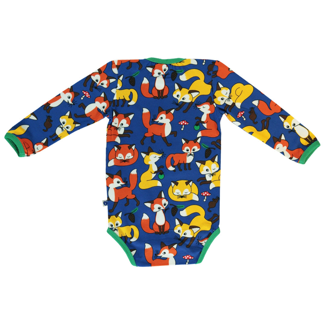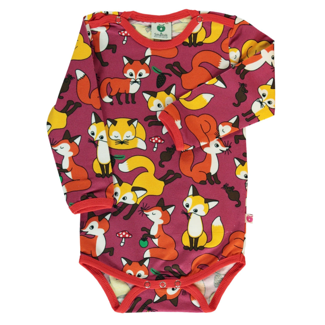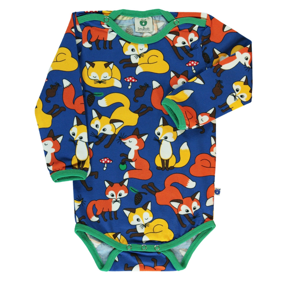 Langärmliger Baby Body mit Fuchs, hergestellt aus organischem und dehnbarem Baumwolljersey. Dieser body ist nach OEKO-TEX Standard 100® zertifiziert, was bedeutet, dass dieser Body hergestellt und auf schädliche Chemikalien getestet wurde, um die Haut und Gesundheit Ihres Kindes zu schützen. Dieser body ist mit Druckknöpfen an den Schultern und am Saum ausgestattet, um das An- und Ausziehen zu erleichtern. Der Körper von Småfolk werden in Dänemark entworfen und halten unzähligen Abenteuern und endlosen Spielstunden stand und behalten auch nach mehrmaligem Gebrauch ihre Form und Farbe.