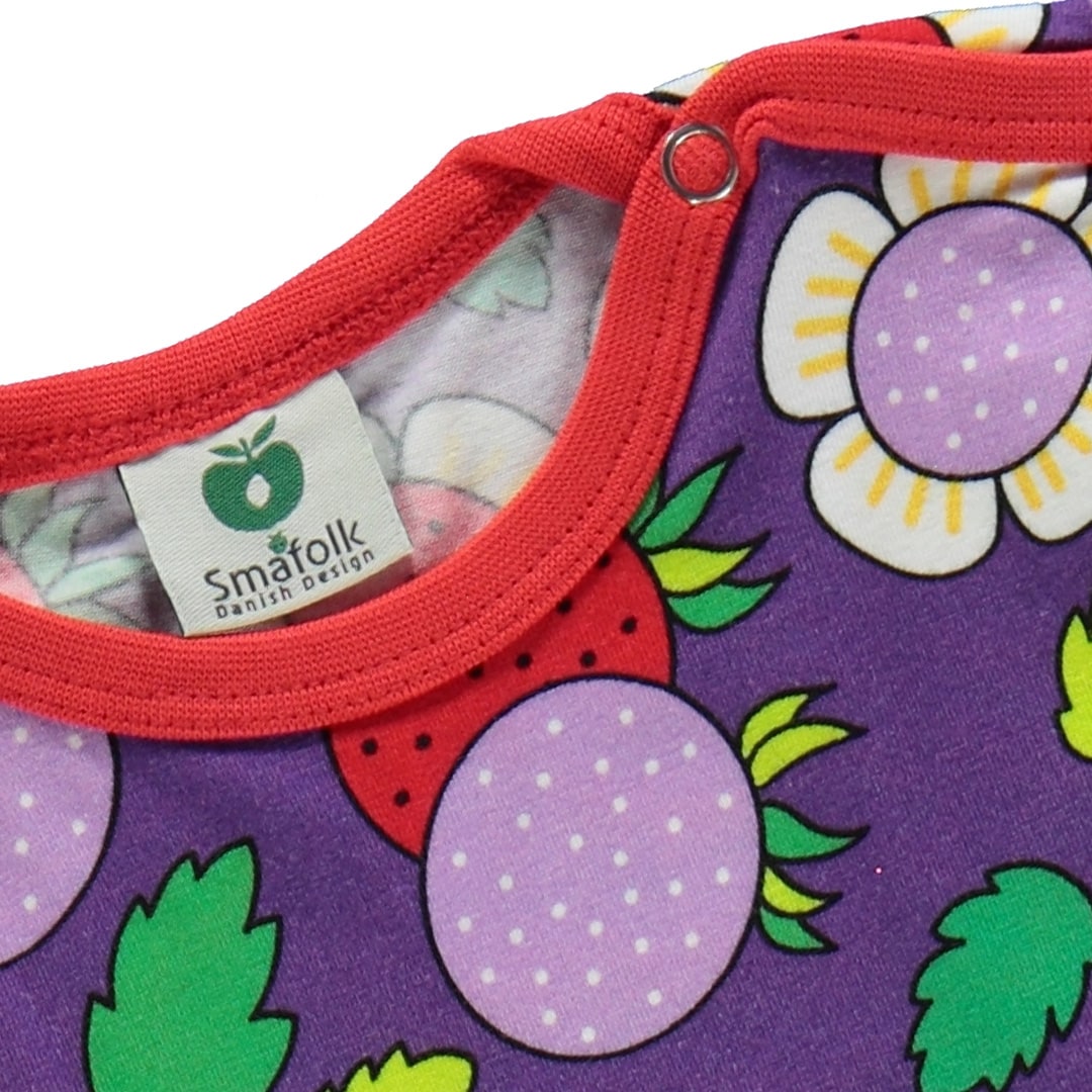 Der Erdbeerdruck ist mit frischen Erdbeeren und süßen Blumen gefüllt, die Freude und gute Erinnerungen ausstrahlen. Bei der Gestaltung der Drucke von Småfolk liegt der Schwerpunkt auf fröhlichen Farben, Details und Geschichten. Unsere Strampler sind eine großartige Möglichkeit, der Garderobe Ihres Kindes Persönlichkeit zu verleihen und gleichzeitig dafür zu sorgen, dass sich Ihr Kind den ganzen Tag wohlfühlt.