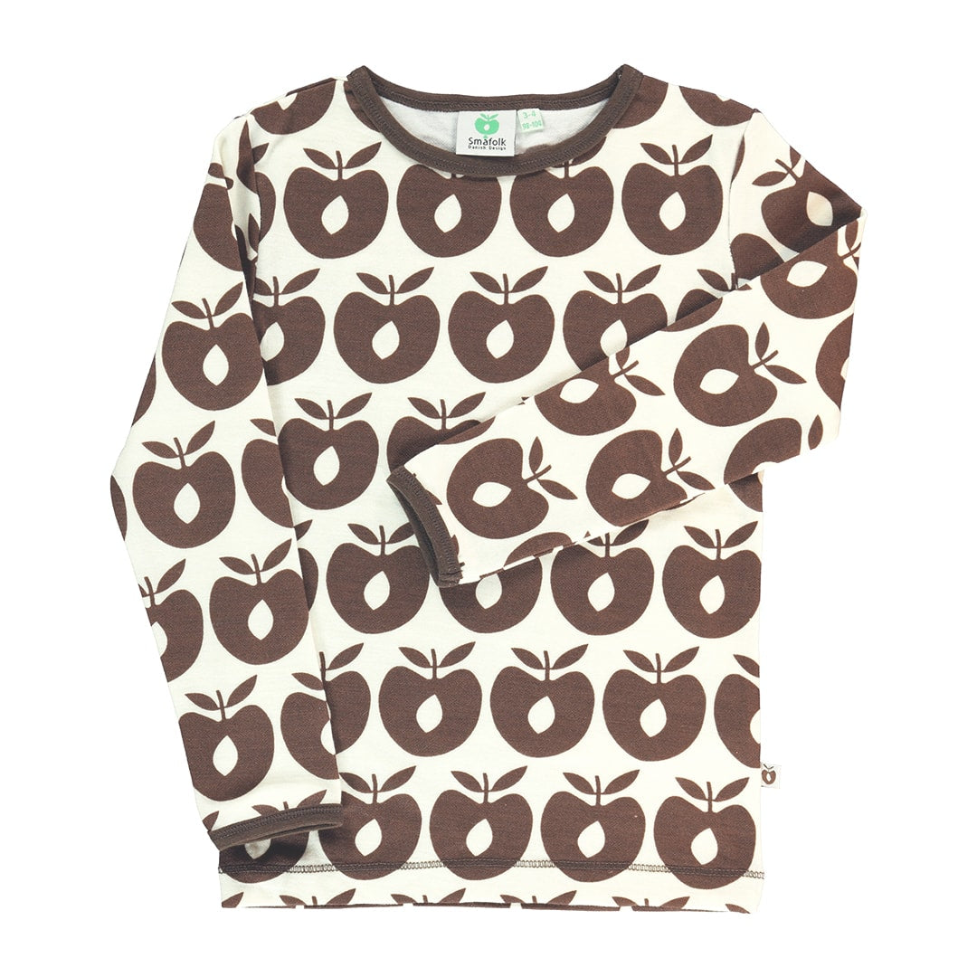 Langarmshirt aus Woll- und Bambusmischung mit Äpfeln. Wolle und Bambus sind fantastische Naturmaterialien, und Bambus ist auch nachhaltig. Wolle hat die Fähigkeit, den Körper bei der Temperaturregulierung zu unterstützen. Wolle isoliert gegen Kälte und hält den Körper warm, auch wenn der Körper feucht ist. Wolle kann das ganze Jahr über, Tag und Nacht, verwendet werden. Wir empfehlen Wolle in allen Wintermonaten.