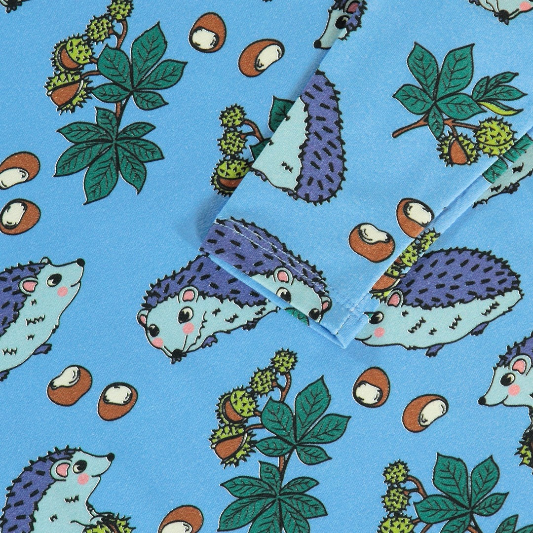 Langarmbluse mit Igeln, hergestellt aus dehnbarem Bio-Baumwolljersey. Diese Bluse ist nach OEKO-TEX Standard 100® zertifiziert, was bedeutet, dass die Bluse hergestellt und auf Schadstoffe getestet wurde, sodass Sie sich um die Haut und Gesundheit Ihres Kindes kümmern können.