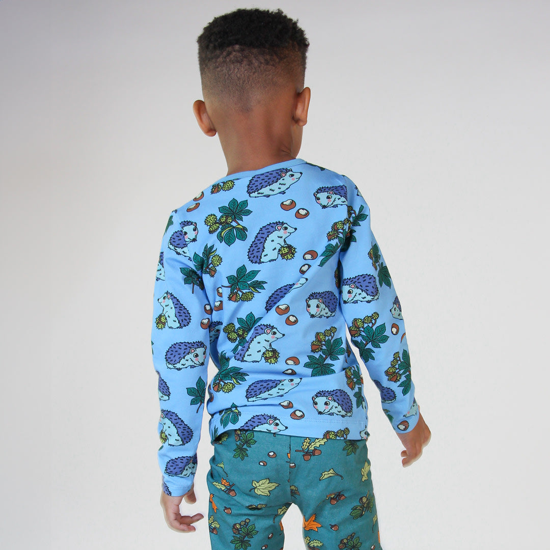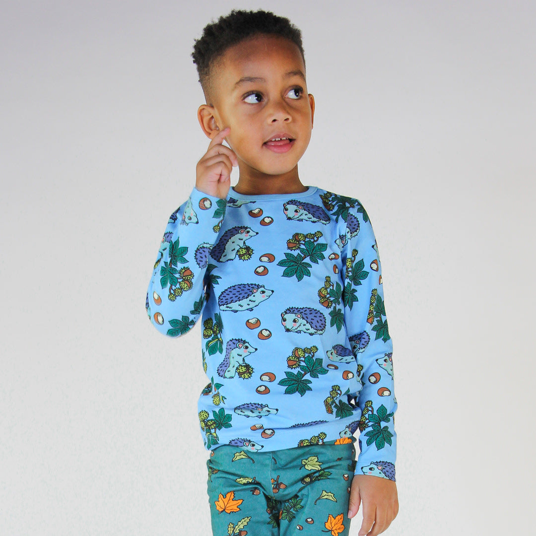 Die Igel laufen über den Waldboden und spielen mit den glänzenden Kastanien. Vielleicht versuchen sie, genug zu sammeln, um gemeinsam Kastanientiere herzustellen. Bei der Gestaltung der Drucke von Småfolk liegt der Schwerpunkt auf fröhlichen Farben, Details und Geschichten. Unsere Langarmblusen sind eine großartige Möglichkeit, der Garderobe Ihres Kindes Persönlichkeit zu verleihen und gleichzeitig dafür zu sorgen, dass sich Ihr Kind den ganzen Tag wohlfühlt.