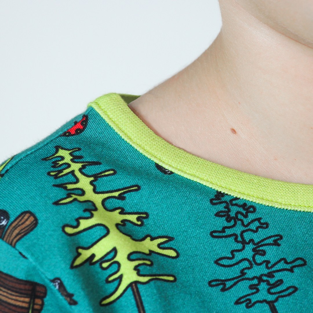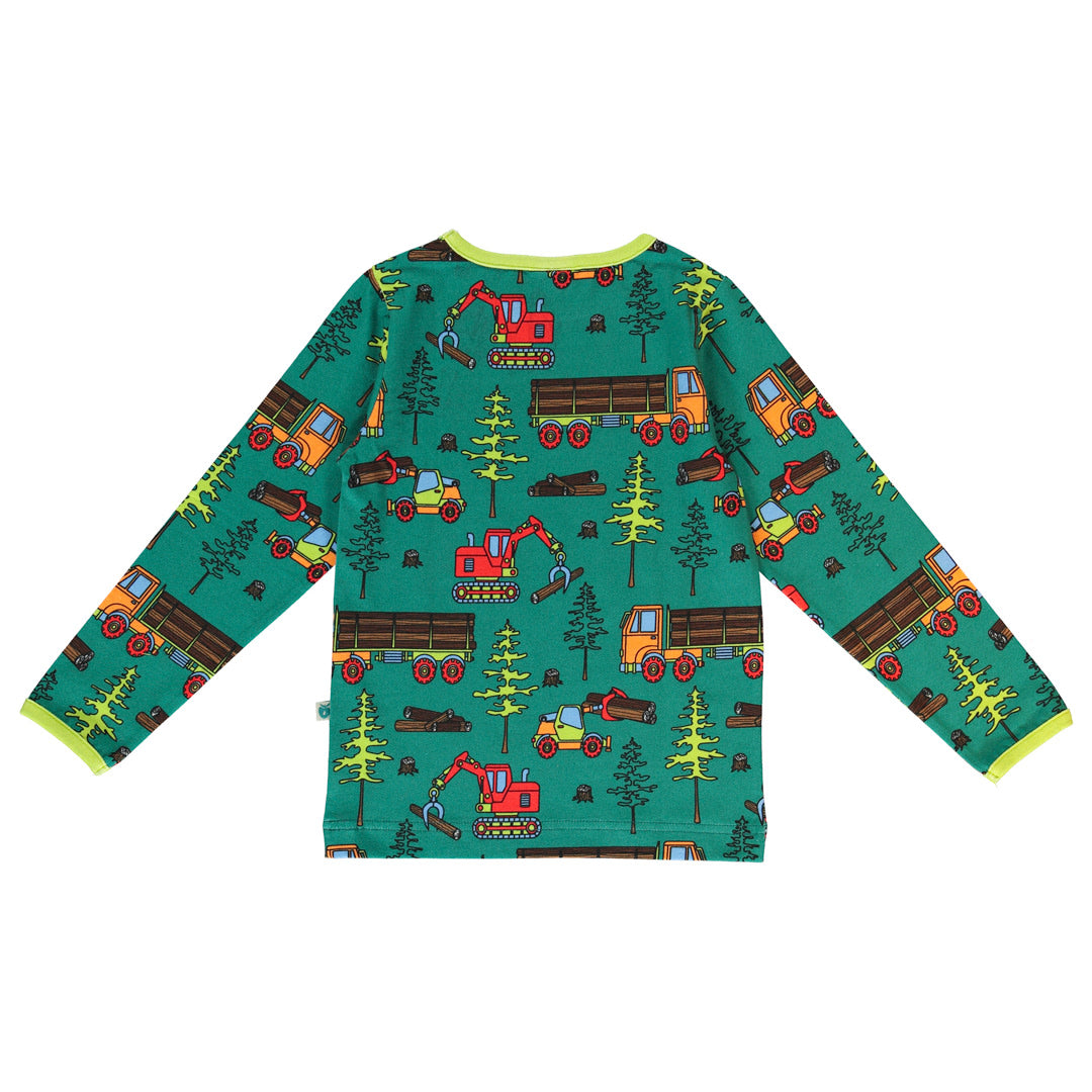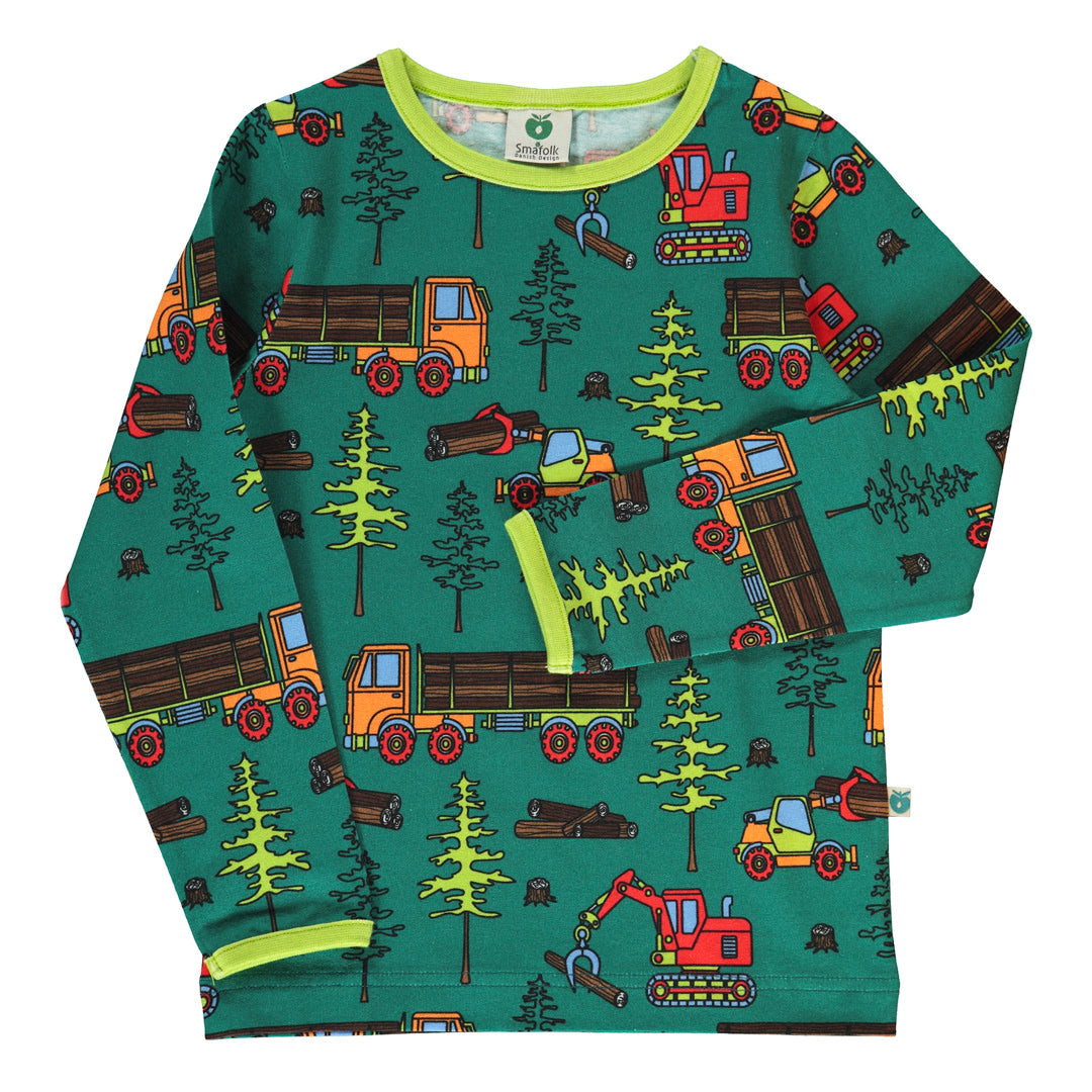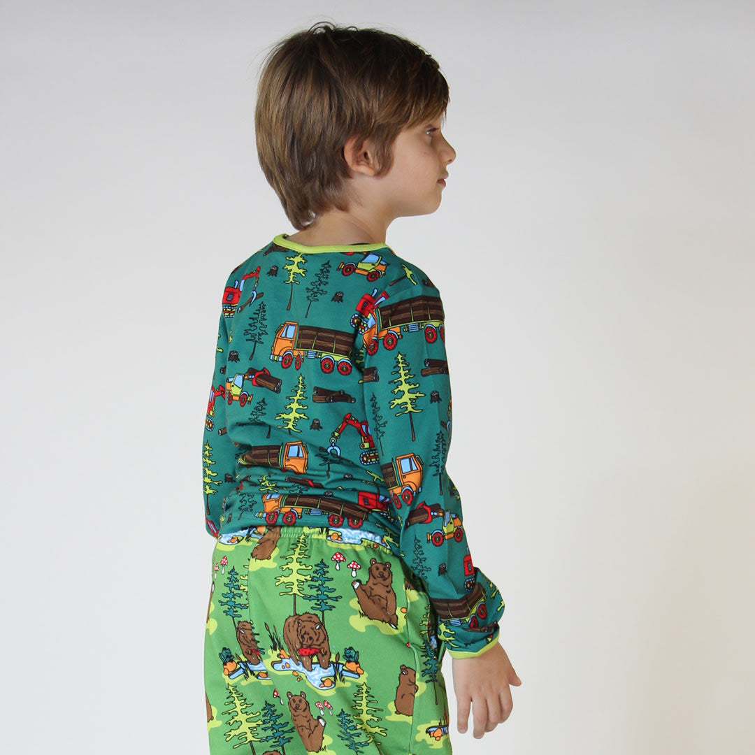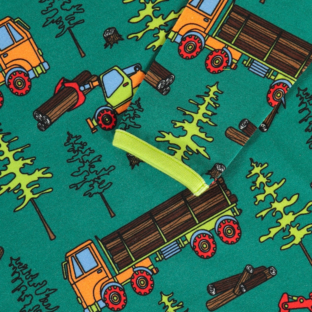 In den großen Wäldern gibt es Menschen und Maschinen, die einerseits Bäume für die Produktion fällen, andererseits aber auch dem Wald und der Natur helfen, indem sie neue Bäume pflanzen und Platz für ihr Wachstum schaffen. Bei der Gestaltung der Drucke von Småfolk liegt der Schwerpunkt auf fröhlichen Farben, Details und Geschichten. Unsere Langarmblusen sind eine großartige Möglichkeit, der Garderobe Ihres Kindes Persönlichkeit zu verleihen und gleichzeitig dafür zu sorgen, dass sich Ihr Kind den ganzen Tag wohlfühlt.