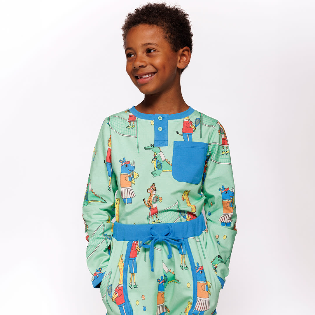 Zeigen Sie Stil mit unserem verspielten Aufdruck, der coole Tiere beim Raufereien auf dem Tennisplatz zeigt. Bei der Gestaltung der Drucke von Småfolk liegt der Schwerpunkt auf fröhlichen Farben, Details und Geschichten. Unsere Langarmblusen sind eine großartige Möglichkeit, der Garderobe Ihres Kindes Persönlichkeit zu verleihen und gleichzeitig dafür zu sorgen, dass sich Ihr Kind den ganzen Tag wohlfühlt.