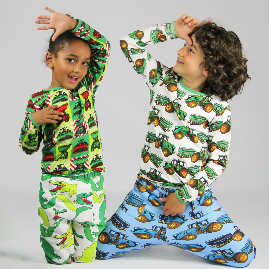 Das Langarmshirt hat eine normale Passform und Rippbündchen am Hals und an den Ärmeln. Die Top von Småfolk werden in Dänemark entworfen und halten unzähligen Abenteuern und endlosen Spielstunden stand und behalten auch nach mehrmaligem Gebrauch ihre Form und Farbe. Das Modell mit dem T-Shirt mit dem grünen Traktor ist 126 cm groß. groß und hat eine Größe von 7-8 Jahren. Das Modell mit dem T-Shirt mit dem blauen Traktor ist 110 cm groß. groß und hat eine Größe von 4-5 Jahren.