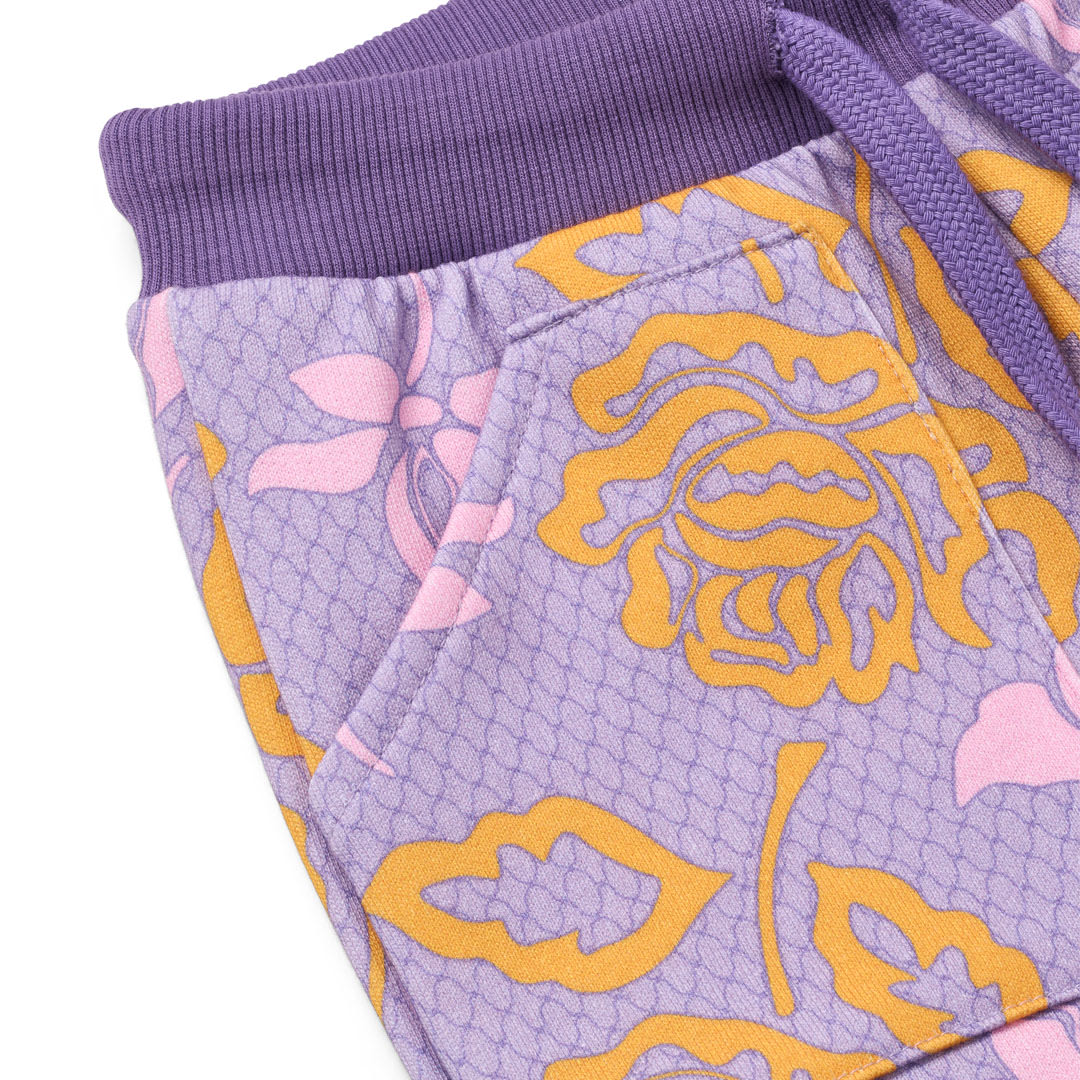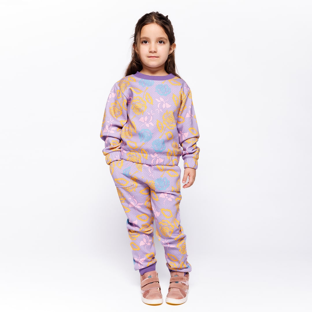 Entspannte Hose mit wunderschönem Rosendruck, hergestellt aus einem weichen und warmen gebürsteten Sweatstoff aus 100 % Bio-Baumwolle. Diese Hose ist nach OEKO-TEX Standard 100® zertifiziert, was bedeutet, dass die Hose auf Schadstoffe getestet und hergestellt wurde, sodass Sie die Haut und Gesundheit Ihres Kindes schützen können.