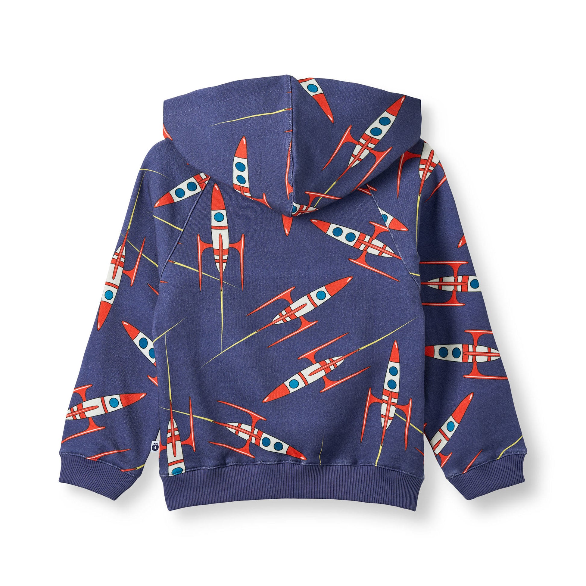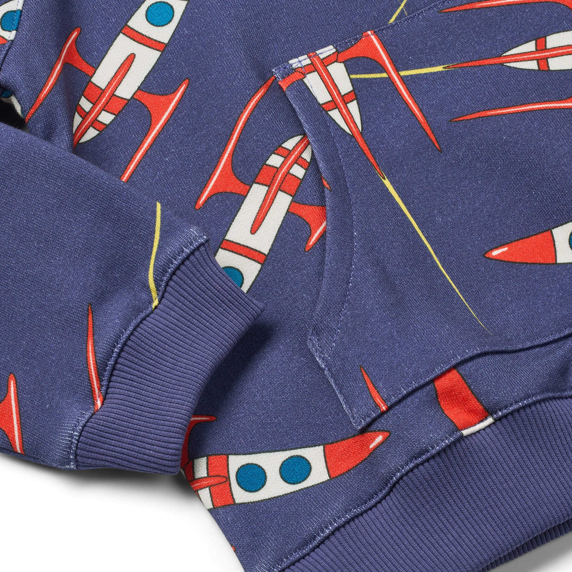 Hoodie mit Raumschiffen, hergestellt aus einem weichen und warmen gebürsteten Sweatstoff aus 100 % Bio-Baumwolle. Dieser Hoodie ist nach OEKO-TEX Standard 100® zertifiziert, was bedeutet, dass der Hoodie hergestellt und auf Schadstoffe getestet wurde, sodass Sie die Haut und Gesundheit Ihres Kindes schützen können.