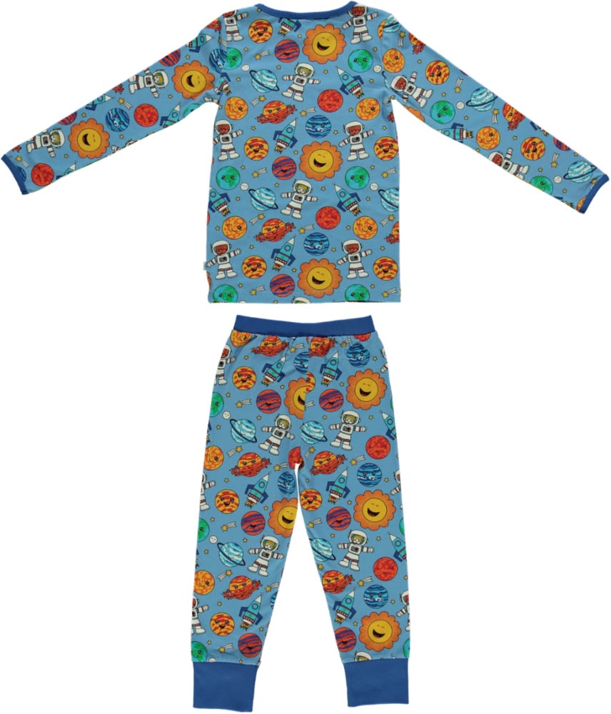 Nachtwäsche mit der Raum in Småfolks ganz eigenem, einzigartigen Retro-Stil. Die Nachtwäsche wird in Dänemark entworfen und aus bester 100 % Bio-Baumwolle und Elastan hergestellt, was das Set dehnbar und weich macht und gleichzeitig die Passform behält. Das Nachtwäsche-Set ist zweiteilig, hat einen bequemen Gummizug in der Taille und eine breite Rippe am Fuß. Die Nachtwäsche von Småfolk ist in schönen, leuchtenden Farben gehalten, in denen Ihr Kind sicher und fest schlafen kann, während sich das Kind gleichzeitig frei bewegen kann. Småfolk Nachtwäsche-Sets sind ideal für lange Morgen am Wochenende, wenn das Kind im weichsten Set spielen und frühstücken kann. Waschanleitung: Bei maximal 30 Grad waschen, nicht bleichen, nicht im Trockner trocknen, bei niedriger Temperatur bügeln, nicht in die chemische Reinigung schicken.