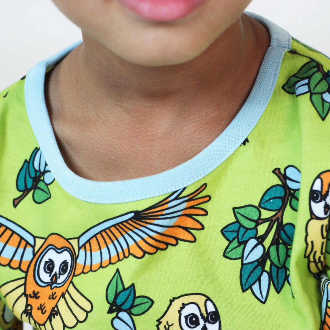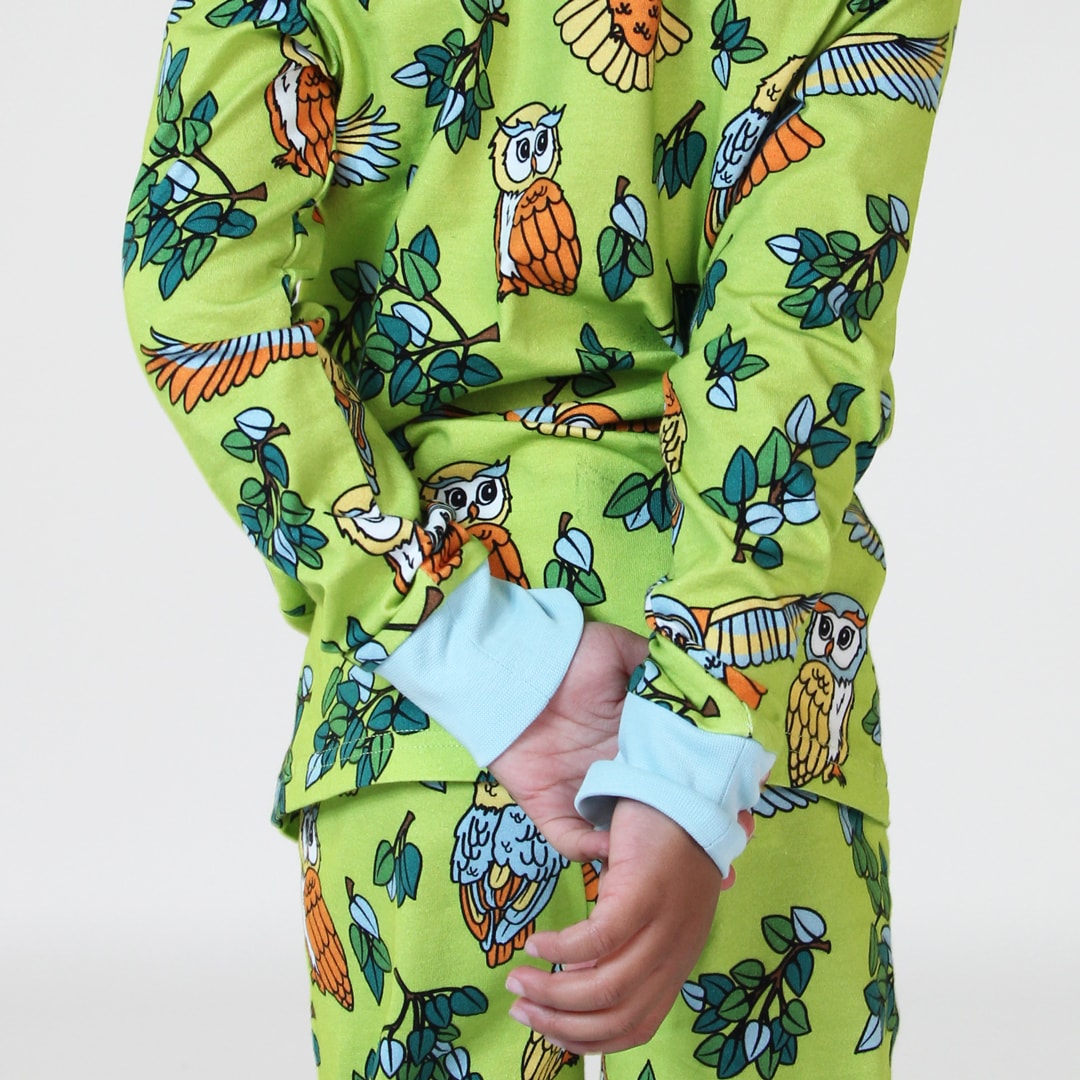 Die Eulen sitzen hoch oben in den Bäumen und blicken auf die Waldlandschaft. Ihr buntes Gefieder fängt das Mondlicht ein und erhellt die dunkle Nacht. Bei der Gestaltung der Drucke von Småfolk liegt der Schwerpunkt auf fröhlichen Farben, Details und Geschichten. Unsere Nachtwäsche-Sets sind eine großartige Möglichkeit, der Garderobe Ihres Kindes Persönlichkeit zu verleihen und gleichzeitig dafür zu sorgen, dass sich Ihr Kind die ganze Nacht über wohl fühlt.