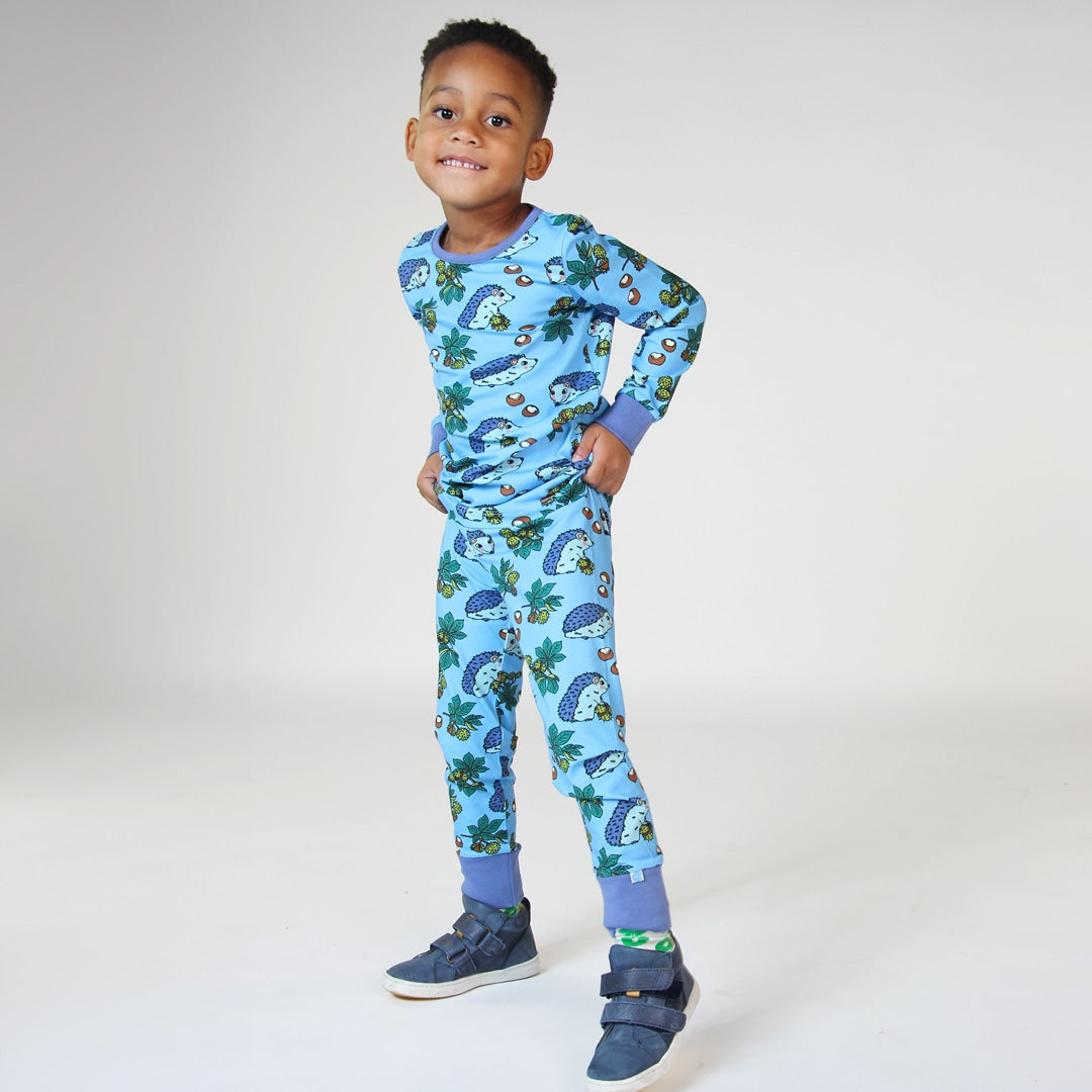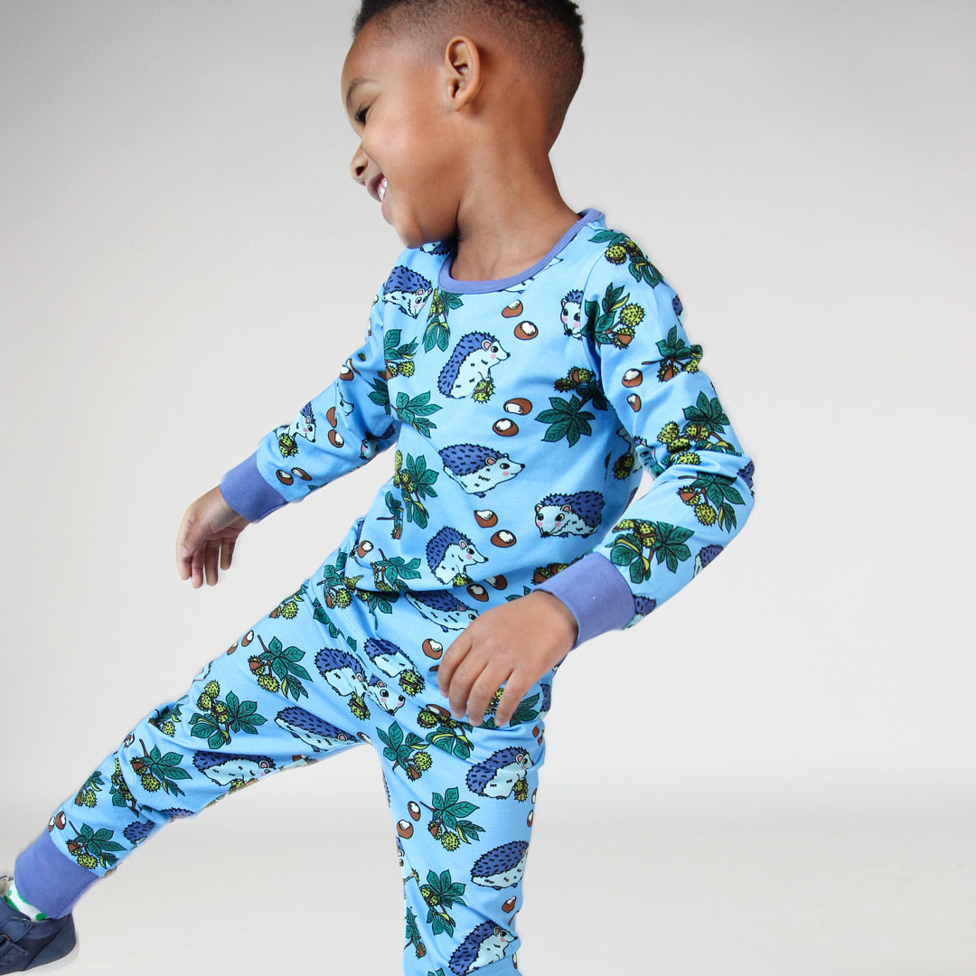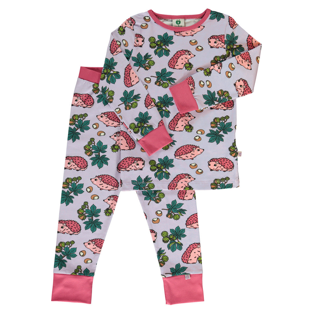 Nachtwäscheset mit Igel, hergestellt aus organischem und dehnbarem Baumwolljersey. Das Set ist nach OEKO-TEX Standard 100® zertifiziert, was bedeutet, dass die Nachtwäsche auf Schadstoffe produziert und geprüft wird, sodass Sie sich um die Haut und Gesundheit Ihres Kindes kümmern können.