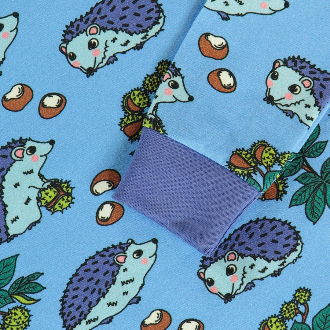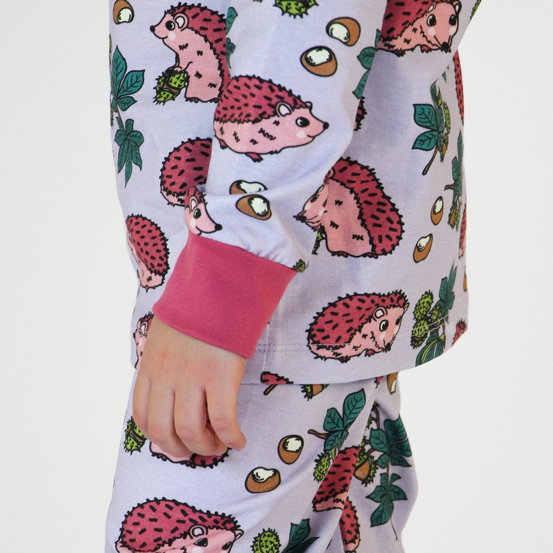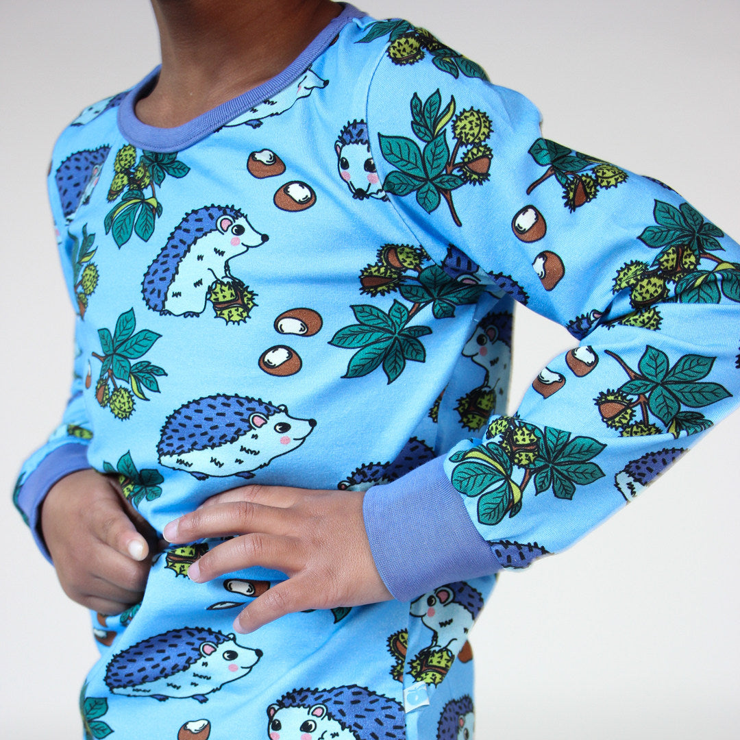 Nachtwäscheset mit Igel, hergestellt aus organischem und dehnbarem Baumwolljersey. Das Set ist nach OEKO-TEX Standard 100® zertifiziert, was bedeutet, dass die Nachtwäsche auf Schadstoffe produziert und geprüft wird, sodass Sie sich um die Haut und Gesundheit Ihres Kindes kümmern können.