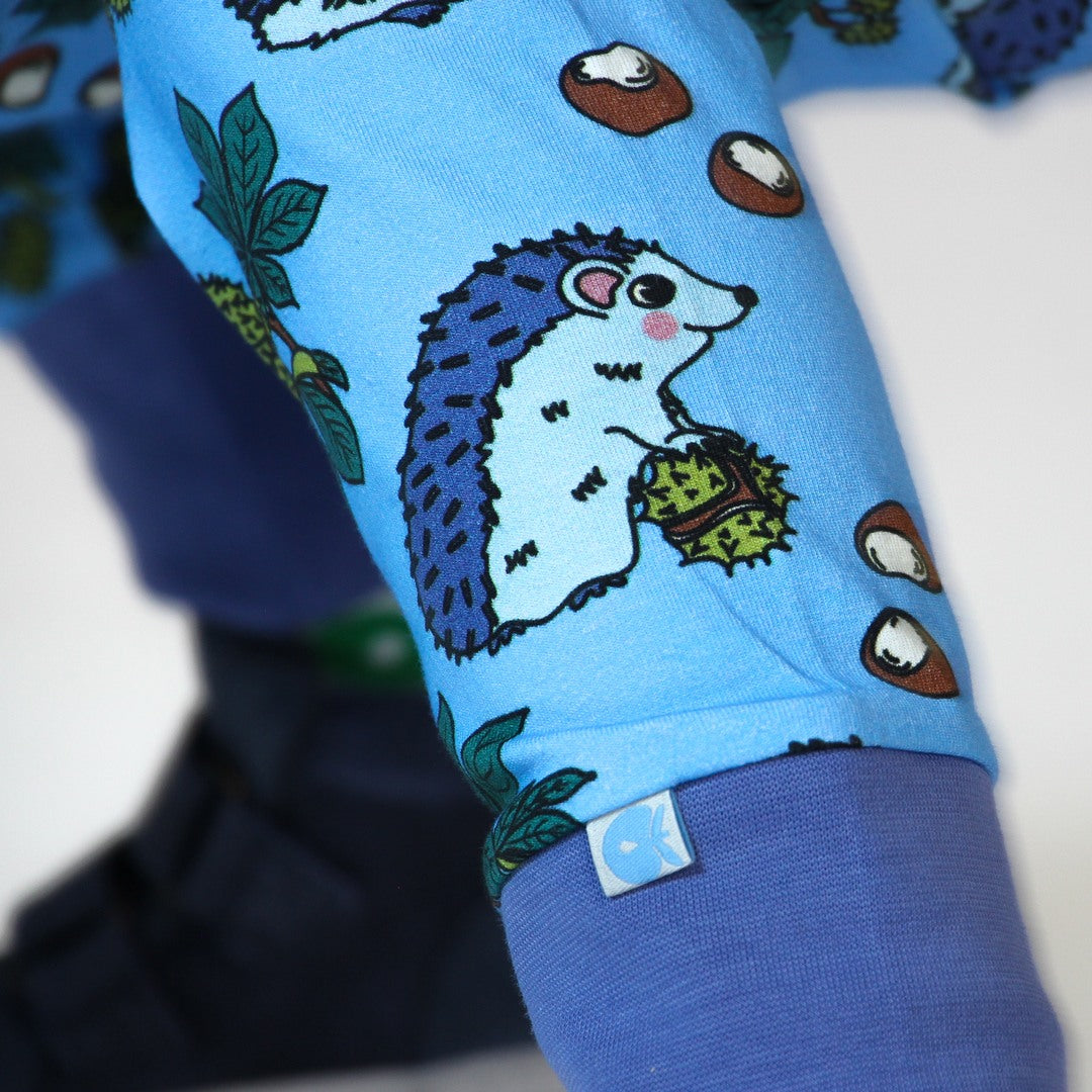 Die Igel laufen über den Waldboden und spielen mit den glänzenden Kastanien. Vielleicht versuchen sie, genug zu sammeln, um gemeinsam Kastanientiere herzustellen. Bei der Gestaltung der Drucke von Småfolk liegt der Schwerpunkt auf fröhlichen Farben, Details und Geschichten. Unsere Nachtwäsche-Sets sind eine großartige Möglichkeit, der Garderobe Ihres Kindes Persönlichkeit zu verleihen und gleichzeitig dafür zu sorgen, dass sich Ihr Kind die ganze Nacht über wohl fühlt.