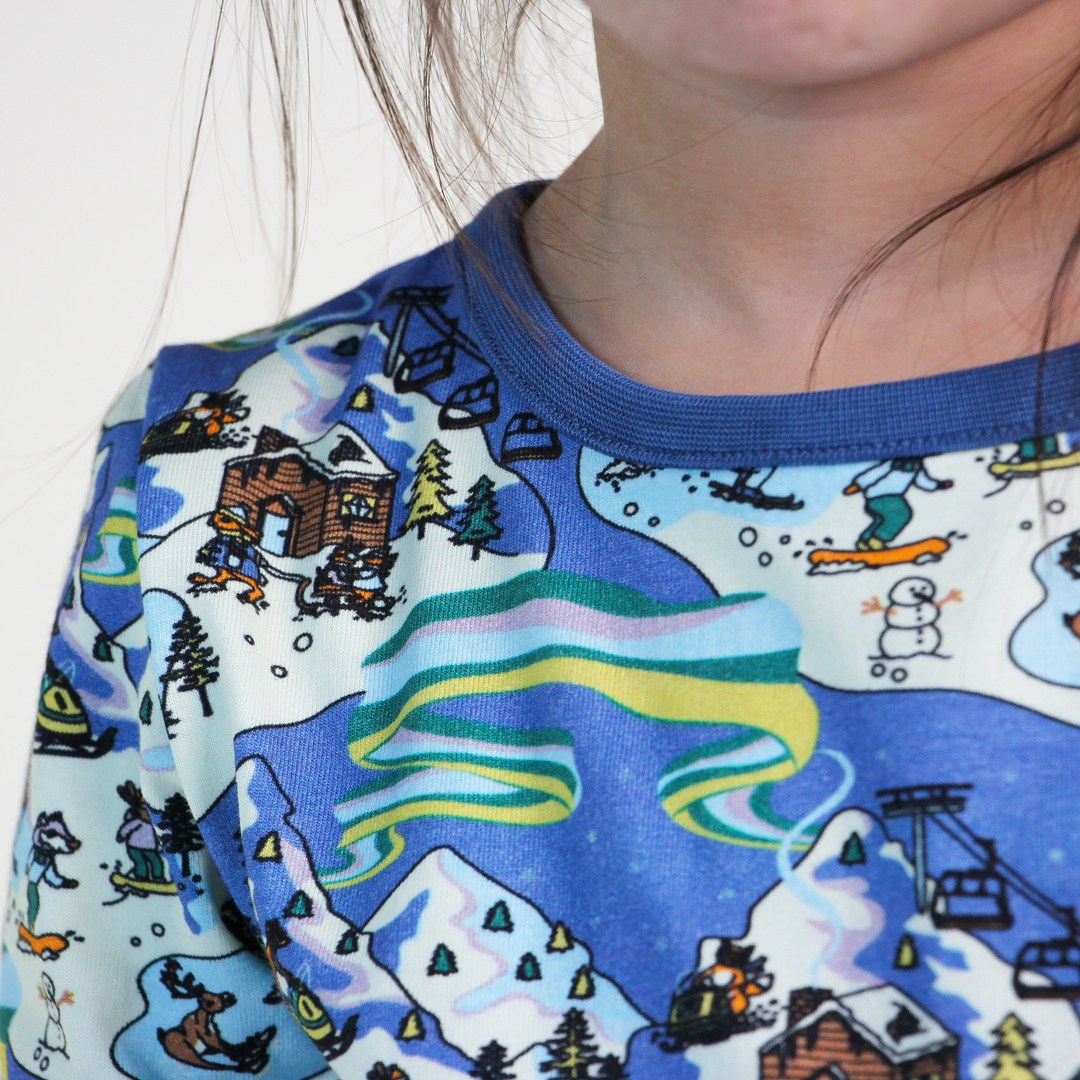 Der Landschaftsdruck vereint alles aus der Kollektion in einer Winterlandschaft mit den Nordlichtern, die durch den verschneiten Himmel schweben. Der Druck ist ein perfekter Weg, um zu bekommen Jeder kann seine Geschichten sammeln, erforschen und teilen. Bei der Gestaltung der Drucke von Småfolk liegt der Schwerpunkt auf fröhlichen Farben, Details und Geschichten. Unsere Nachtwäsche-Sets sind eine großartige Möglichkeit, der Garderobe Ihres Kindes Persönlichkeit zu verleihen und gleichzeitig dafür zu sorgen, dass sich Ihr Kind die ganze Nacht über wohl fühlt.