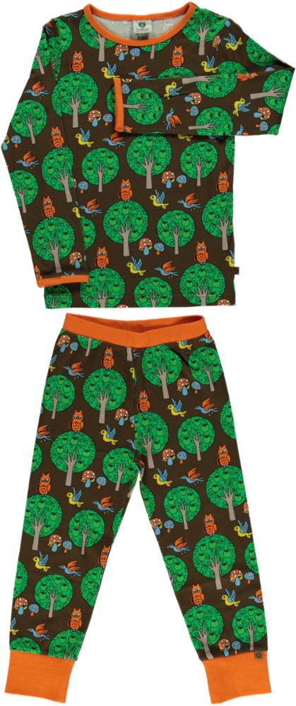 Die Nachtwäsche wird in Dänemark entworfen und aus 100 % bester Bio-Baumwolle und Elasthan hergestellt, was das Set dehnbar und weich macht und gleichzeitig die Passform behält Taille und hat eine breite Rippe am Fuß. Småfolk's Nachtwäsche ist in schönen hellen Farben, in denen Ihr Kind sicher und fest schlafen kann, während sich das Kind gleichzeitig frei bewegen kann.Småfolk's Nachtwäsche-Set ist ideal für lange Vormittags am Wochenende, wo das Kind in der weichsten Umgebung spielen und frühstücken kann. Nachtwäsche mit Apfelbaum-Print in Småfolks ganz eigenem, einzigartigen Retro-Stil.
