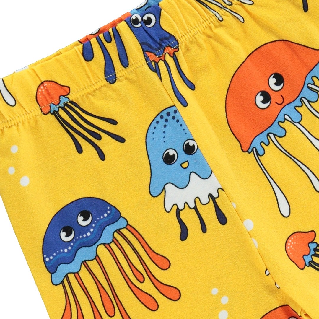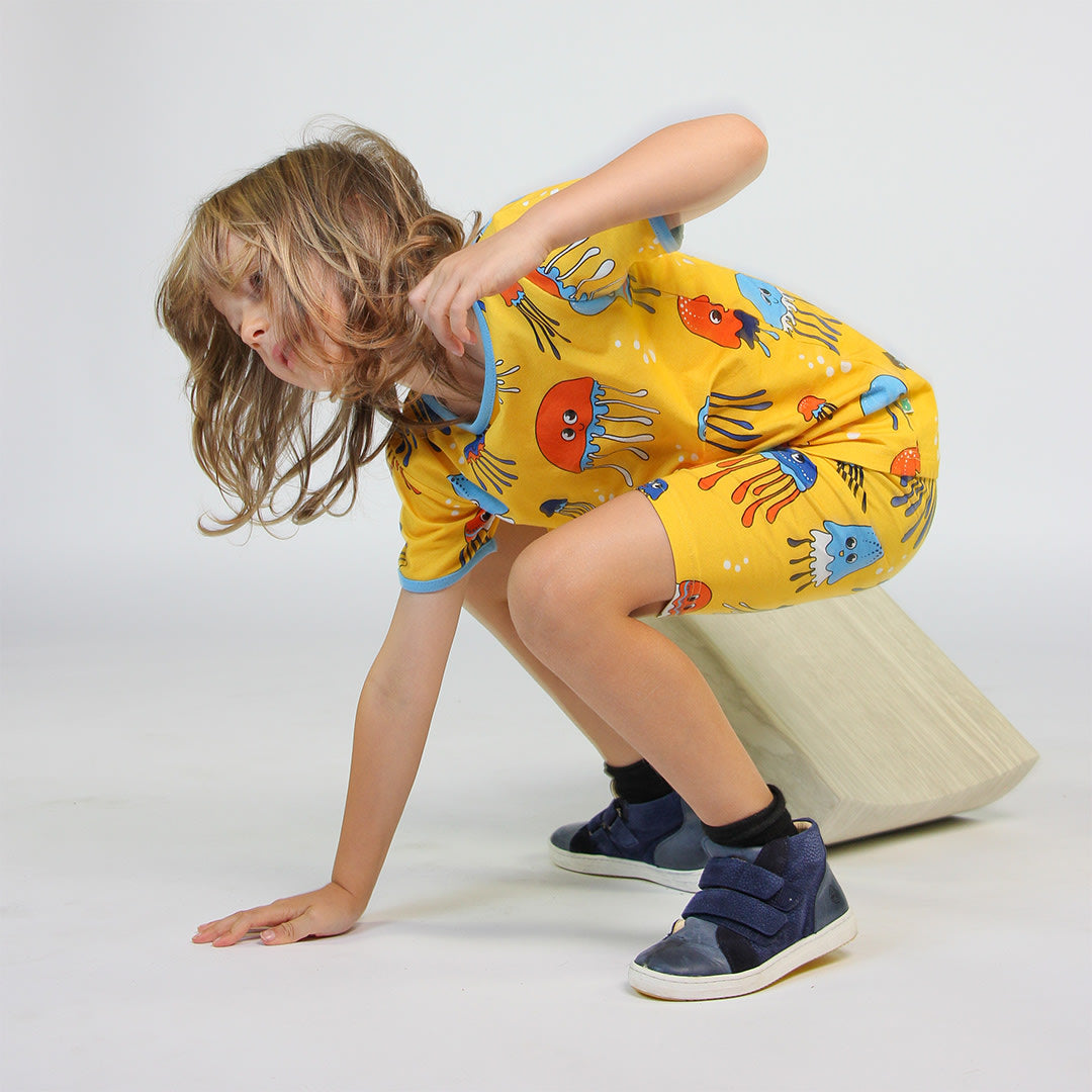 Radlerhose mit Qualle, hergestellt aus organischem und dehnbarem Baumwolljersey. Diese Shorts ist nach OEKO-TEX Standard 100® zertifiziert, was bedeutet, dass diese Shorts hergestellt und auf schädliche Chemikalien getestet wurde, um die Haut und Gesundheit Ihres Kindes zu schützen. Diese Shorts hat eine normale Passform und einen elastischen Bund. Die Shorts von Småfolk werden in Dänemark entworfen und halten unzähligen Abenteuern und endlosen Spielstunden stand und behalten auch nach mehrmaligem Gebrauch ihre Form und Farbe.