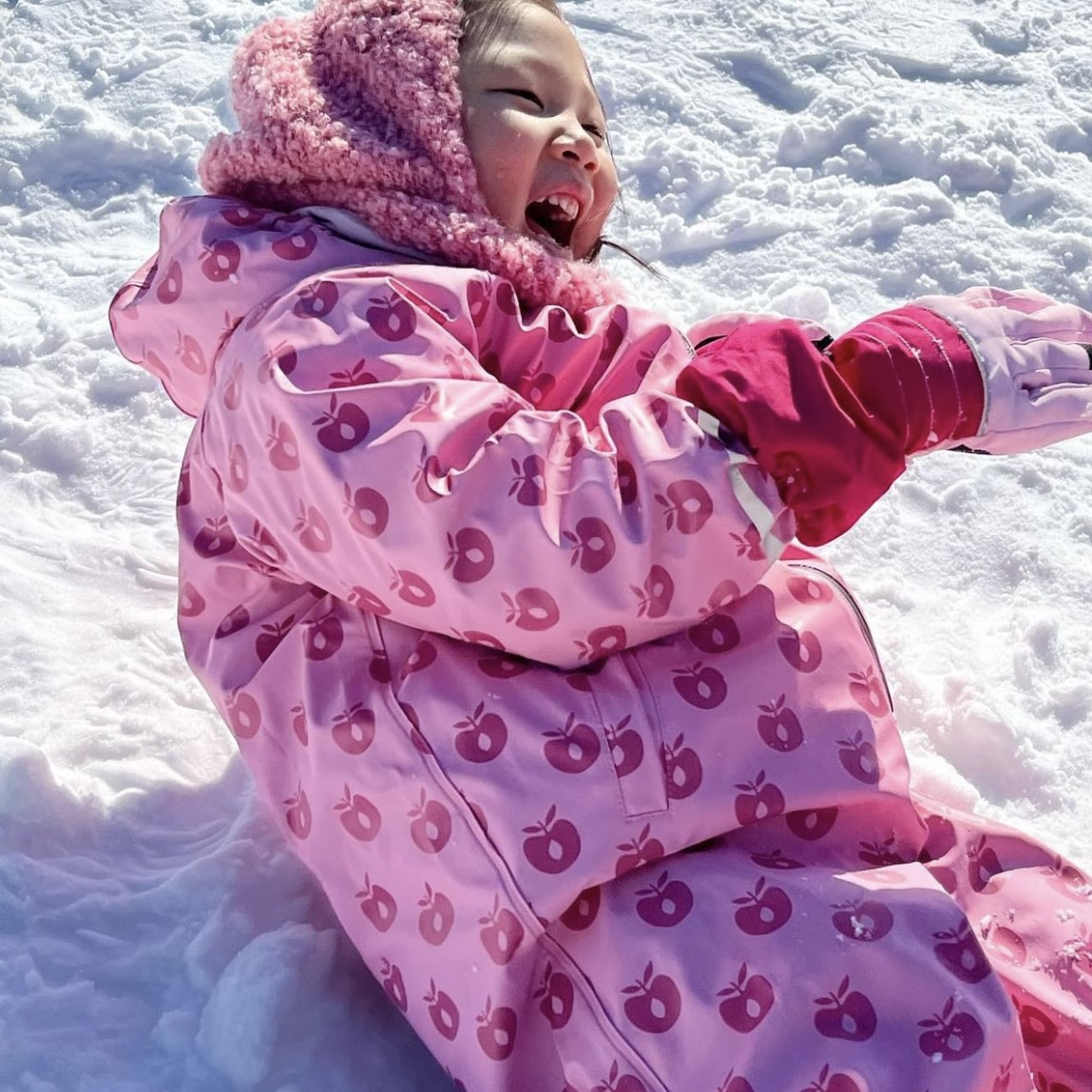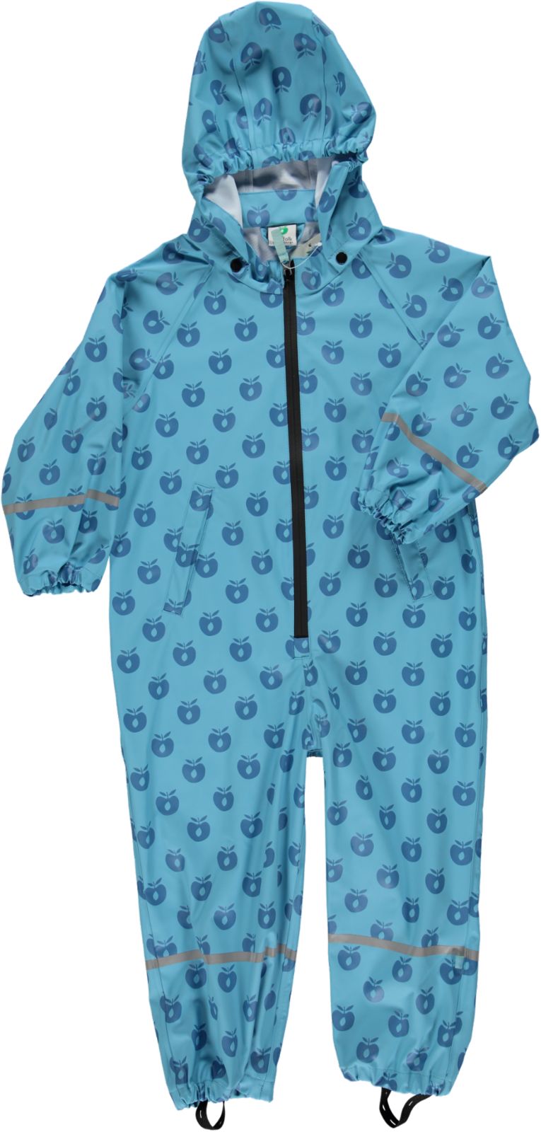 Rainwear Suit with Apple print.The suit has detachable hood,zipper, two pockets with zipperand reflex around the sleeves and legs.ALL STITCHES ARE WELDED, sowater can't get in.Småfolk rainwear does NOT contain:PVC, phthalates, nickel nor AZO dyestuffs.Technical info:Water column pressure: 10.000mmWelded seams.