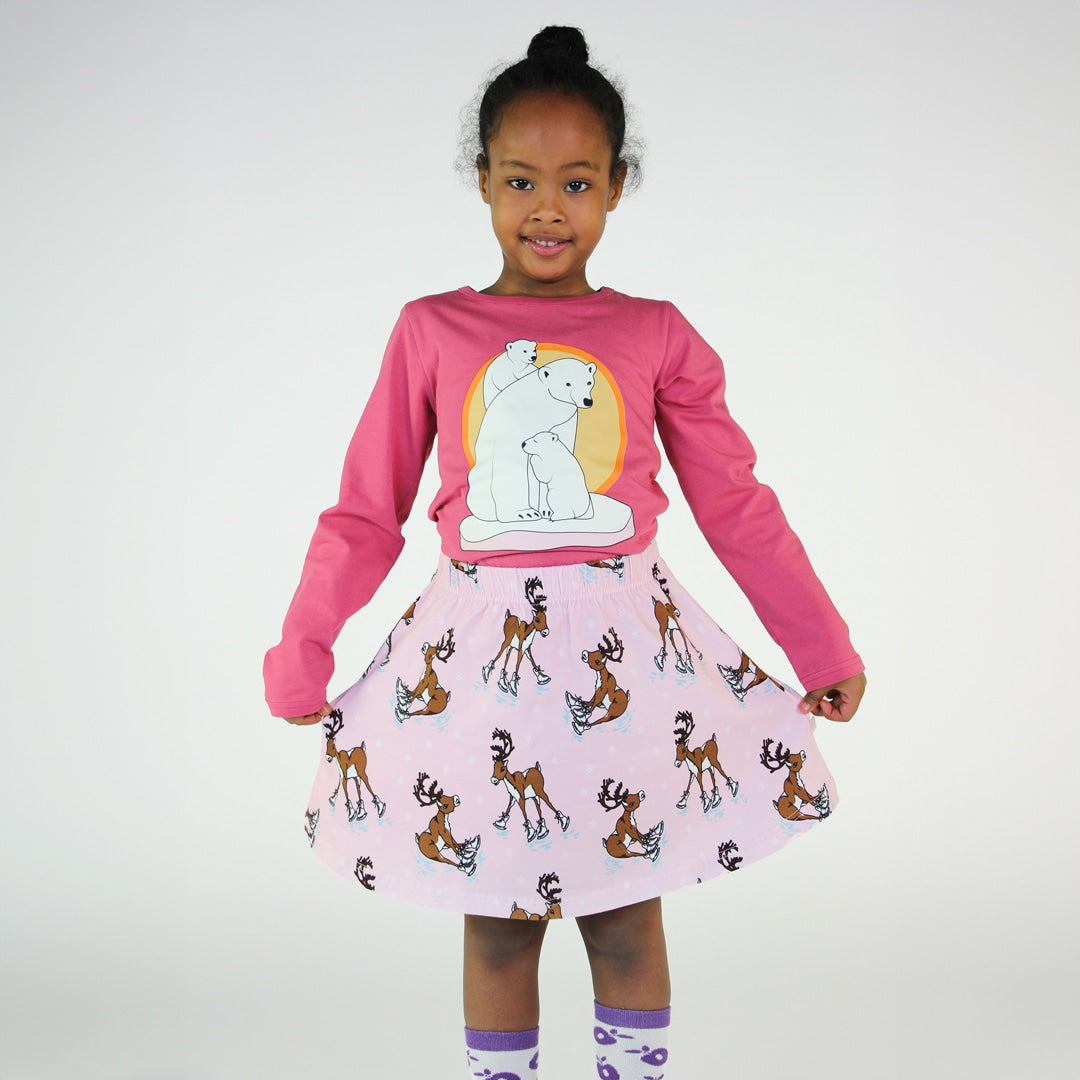 Die beiden Rentiere versuchen ihr Bestes, um auf dem See Schlittschuh zu laufen, aber das ist nicht einfach, wenn man vier Beine hat. Der niedliche Rentierdruck ist perfekt für die Winterzeit und kann als Set oder in Kombination mit anderen Drucken verwendet werden. Bei der Gestaltung der Drucke von Småfolk liegt der Schwerpunkt auf fröhlichen Farben, Details und Geschichten. Unsere Röcke sind eine großartige Möglichkeit, der Garderobe Ihres Kindes Persönlichkeit zu verleihen und gleichzeitig dafür zu sorgen, dass sich Ihr Kind den ganzen Tag wohlfühlt.