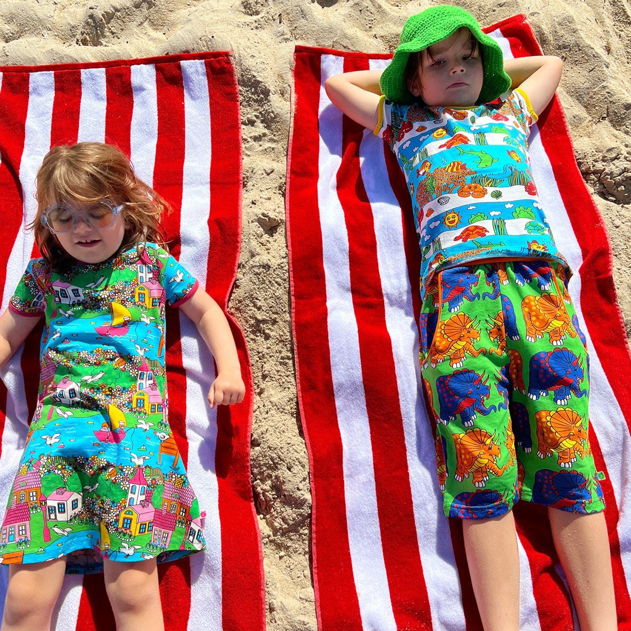 Shorts mit Dino-Print aus weicher Bio-Baumwolle und im ganz eigenen, einzigartigen Retro-Stil von Småfolk.Die Shorts sind mit Gummizug und Kordelzug in der Taille sowie zwei großen Taschen gestaltet. Die Shorts sind in wunderschönen leuchtenden Farben gehalten, in denen Ihr Kind spielen, wachsen und seine Fantasie erforschen kann, während es dem Kind ermöglicht, sich frei zu bewegen