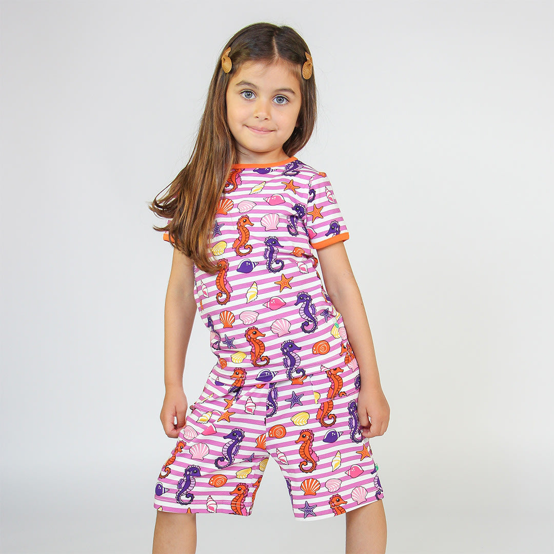 Shorts mit Seepferdchen, hergestellt aus organischem und dehnbarem Baumwolljersey. Diese Shorts ist nach OEKO-TEX Standard 100® zertifiziert, was bedeutet, dass diese Shorts hergestellt und auf schädliche Chemikalien getestet wurde, um die Haut und Gesundheit Ihres Kindes zu schützen. Die Shorts sind mit Gummizug und kordelzug in der Taille sowie zwei großen Taschen gestaltet . Die Shorts von Småfolk werden in Dänemark entworfen und halten unzähligen Abenteuern und endlosen Spielstunden stand und behalten auch nach mehrmaligem Gebrauch ihre Form und Farbe.