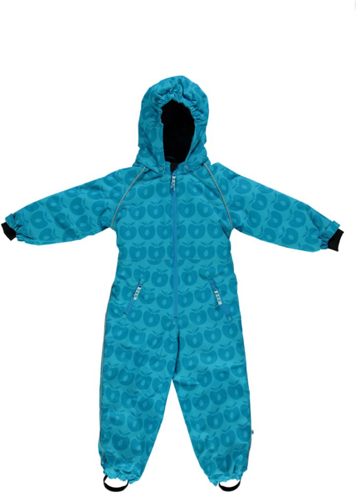 Der Anzug hat abnehmbare Gummibänder an den Füßen und reflektierende Paspeln an der Schulter und an den Hosenbeinen. Der Anzug verfügt über eine DuPont™ Sorona®-Isolierung, die das Kind warm und trocken hält. Der Anzug ist mit BIONIC-FINISH® ECO behandelt, einer biologisch abbaubaren Oberflächenbehandlung. Die Behandlung verhindert, dass Feuchtigkeit in den Stoff eindringt, während überschüssige Körperfeuchtigkeit automatisch an die Oberfläche des Materials transportiert wird, wo sie verdunstet. Die Behandlung ist frei von fluoridhaltigen Substanzen. Der Fluganzug ist schnee- und wasserabweisend, schmutzabweisend und winddicht.