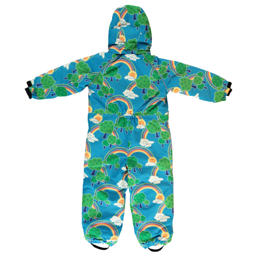 Der Anzug hat abnehmbare Gummibänder an den Füßen und reflektierende Paspeln an der Schulter und an den Hosenbeinen. Der Anzug verfügt über eine DuPont™ Sorona®-Isolierung, die das Kind warm und trocken hält. Der Anzug ist mit BIONIC-FINISH® ECO behandelt, einer biologisch abbaubaren Oberflächenbehandlung. Die Behandlung verhindert, dass Feuchtigkeit in den Stoff eindringt, während überschüssige Körperfeuchtigkeit automatisch an die Oberfläche des Materials transportiert wird, wo sie verdunstet. Die Behandlung ist frei von fluoridhaltigen Substanzen. Der Fluganzug ist schnee- und wasserabweisend, schmutzabweisend und winddicht.