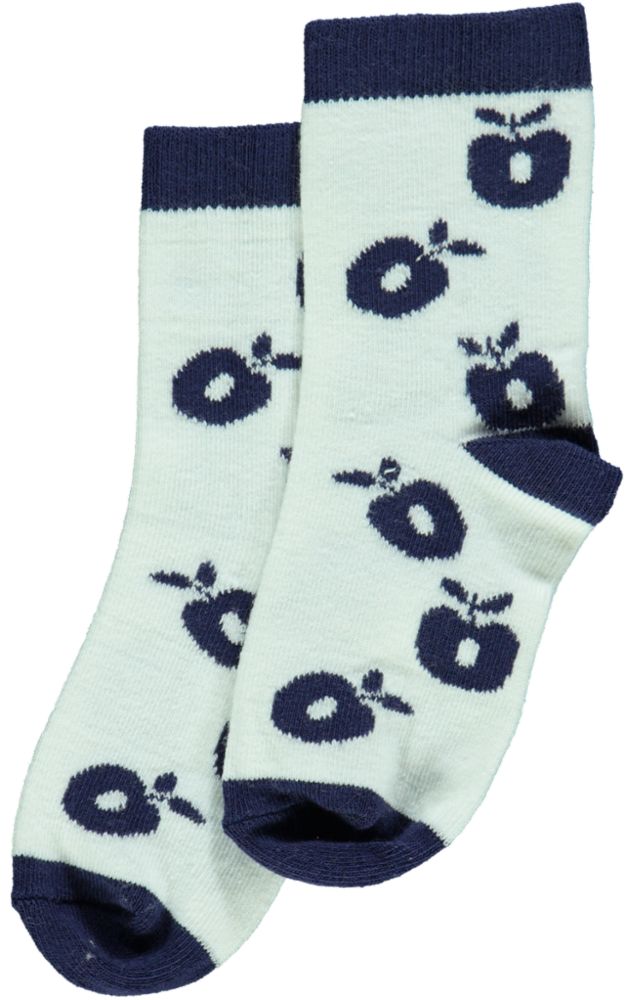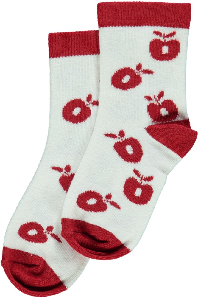Söckchen mit Äpfeln, hergestellt aus 100 % Bio-Baumwolle. Diese Socken sind nach OEKO-TEX Standard 100® zertifiziert, was bedeutet, dass die Socken hergestellt und auf Schadstoffe getestet werden, sodass Sie sich um die Haut und Gesundheit Ihres Kindes kümmern können.