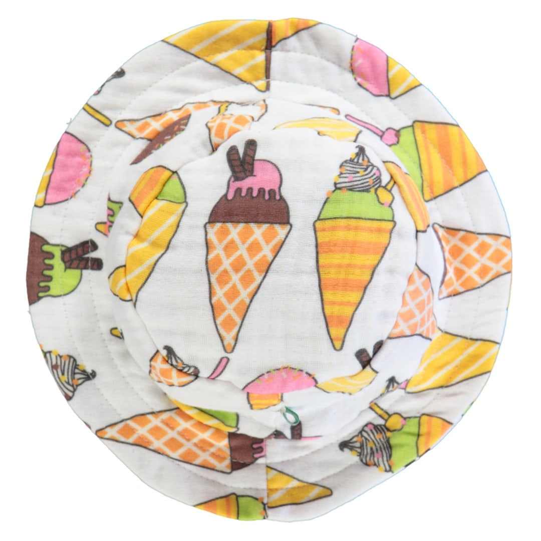 Sonnehut mit Eiscreme, hergestellt aus dehnbarem Bio-Baumwolljersey. Der Bully-Hut ist nach OEKO-TEX Standard 100® zertifiziert, was bedeutet, dass der Bully-Hut hergestellt und auf Schadstoffe getestet wurde, sodass Sie sich um die Haut und Gesundheit Ihres Kindes kümmern können. Dies ist ein klassischer Bully-Hut mit Bändern auf jeder Seite, so dass der Bully-Hut unter dem Kinn gebunden werden kann. Der Bully-Hut von Småfolk werden in Dänemark mit dem Ziel entworfen, unzähligen Abenteuern und Spielen standzuhalten und auch nach mehrmaligem Tragen Form und Farbe zu behalten.