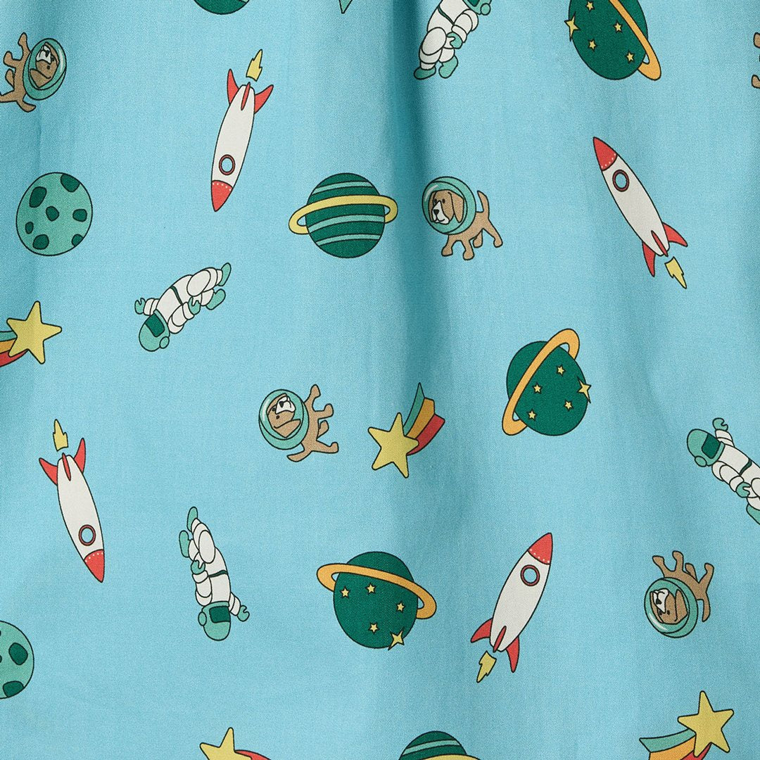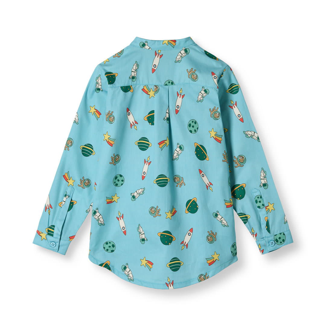 Button-Down-Hemd mit Universum-Print, hergestellt aus gewebter Baumwolle. Dieses Hemd ist nach OEKO-TEX Standard 100® zertifiziert, was bedeutet, dass das Hemd hergestellt und auf Schadstoffe getestet wurde, sodass Sie die Haut und Gesundheit Ihres Kindes schützen können.